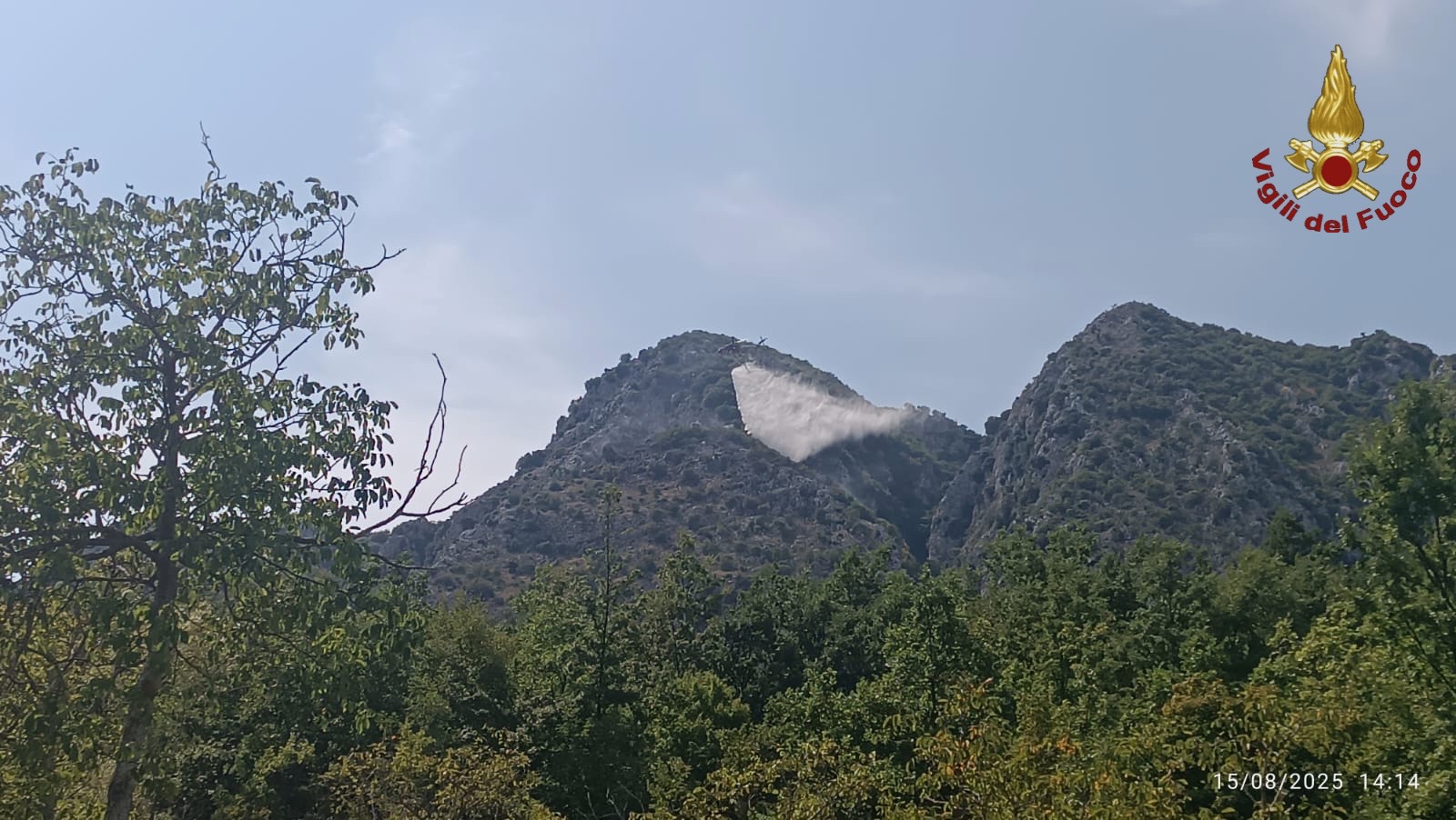 Le operazioni di spegnimento, coordinate dai Vigili del Fuoco, hanno visto impegnato anche l’elicottero antincendio Erickson S-64F Air‑Crane “Aquila Rossa”, capace di caricare fino a 9.000 litri d’acqua. Il mezzo ha effettuato continui prelievi dal lago di Castel San Vincenzo per poi sganciare l’acqua sulle fiamme.