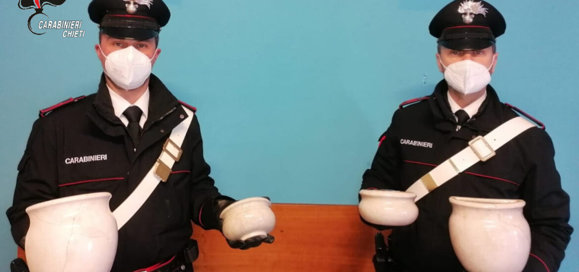 Dal monitoraggio delle auto che nei giorni del furto si trovavano in paese, è stata individuata, anche grazie alla segnalazione di alcuni cittadini della strana presenza dei due in paese ed in particolare nella zona del cimitero, quella dei ladri, nei cui confronti la procura della Repubblica di Chieti ha emesso un decreto di perquisizione delle loro abitazioni di Castel Frentano. Ma questa volta ad andare in trasferta, per eseguirle, sono stati i carabinieri di Tollo supportati da quelli di Miglianico ed Orsogna. La perquisizione in un garage nella disponibilità di uno dei due ha permesso di recuperare 5 degli arredi funebri sottratti, che presto saranno restituiti ai legittimi proprietari che li potranno ricollocare lì dov’erano. I due dovranno rispondere di furto aggravato in concorso e sono stati anche proposti al questore della provincia di Chieti per l’applicazione della misura di prevenzione del foglio di via obbligatorio dal comune di Canosa Sannita con il divieto di potervi fare ritorno fino a 3 anni. La prevenzione ed il contrasto dei reati contro il patrimonio sono tra le priorità delle stazioni dell’Arma sparse sul territorio e, come dimostra quest’ultima indagine, la differenza la fanno puntualmente la collaborazione dei cittadini così come la sinergia tra le istituzioni locali.