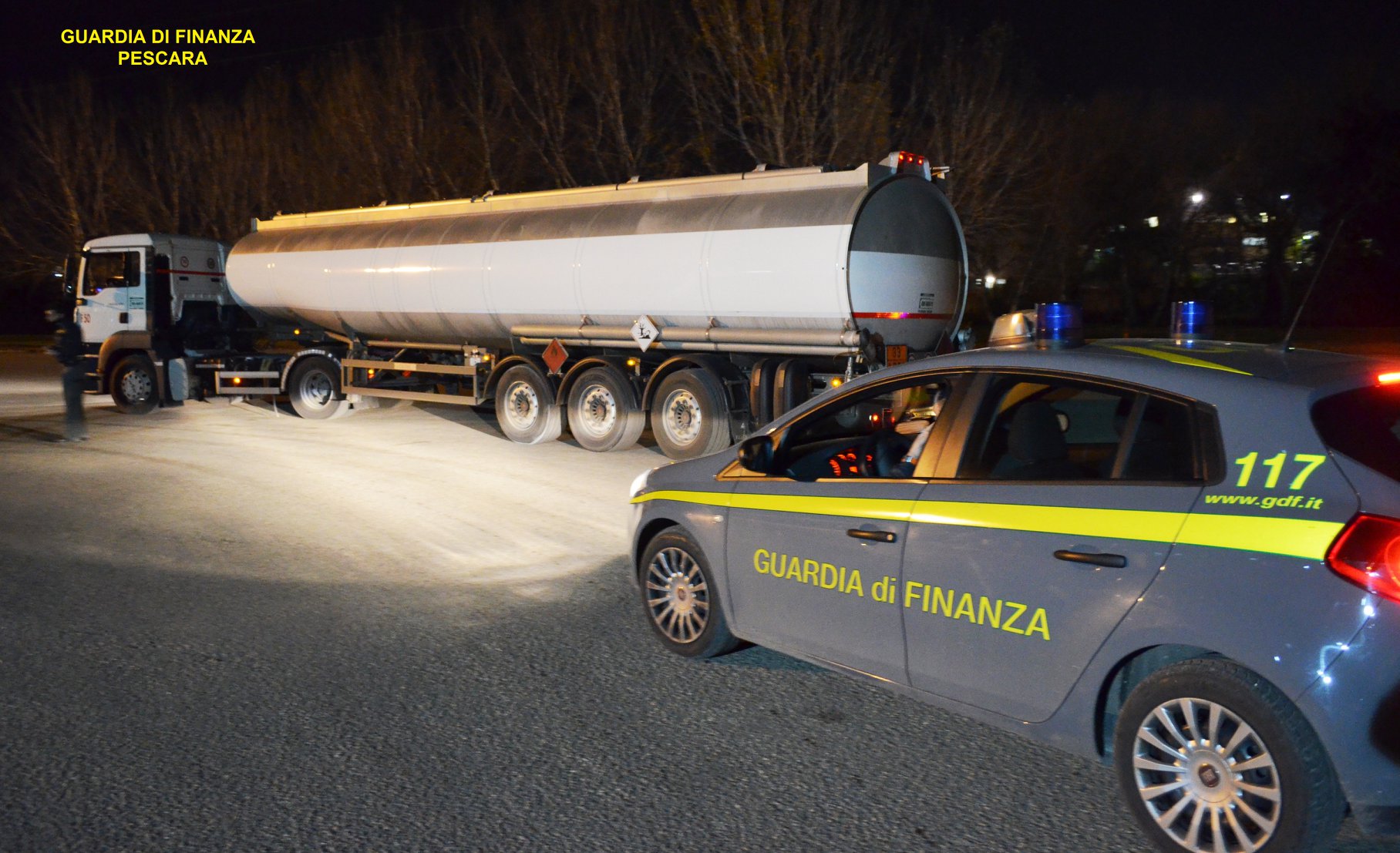 I militari della Guardia di Finanza di Pescara, nell’ambito delle attività di contrasto al contrabbando e all’evasione delle accise gravanti sui prodotti petroliferi, hanno sottoposto a sequestro un’autocisterna adibita al trasporto di prodotto petrolifero, unitamente al suo carico corrispondente a circa 28.000 litri di gasolio per autotrazione, scortato da documentazione falsa e presumibilmente proveniente dall’Est europeo.