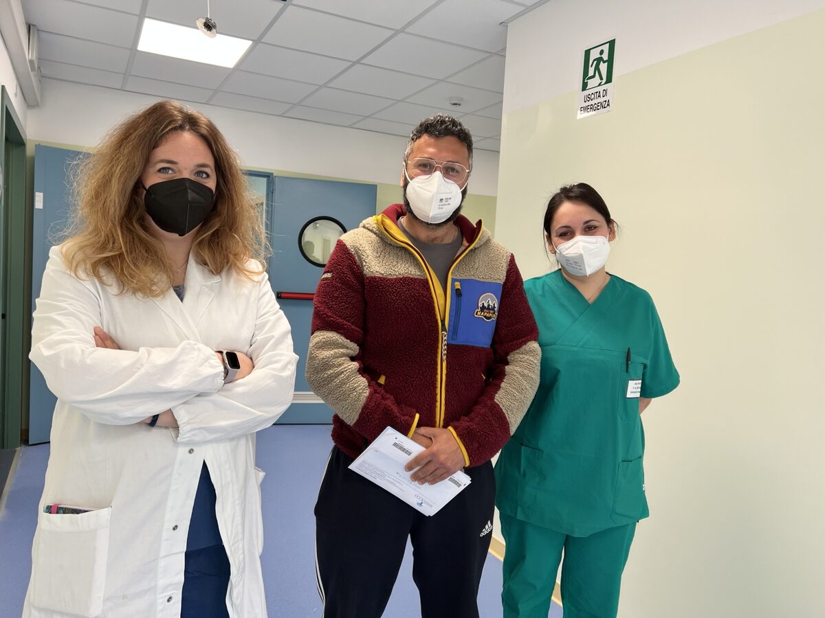 Primo paziente, nella foto insieme alle due dottoresse in servizio nell’unità operativa, per l’Endoscopia di Atessa, reparto completamente rinnovato grazie a fondi pubblici e privati che la Asl Lanciano Vasto Chieti ha destinato all’ospedale. Parte dell’investimento complessivo di tre milioni di euro fatto sul “San Camillo de Lellis” ha riguardato lavori di adeguamento strutturale della Medicina Covid, Pronto soccorso, Radiologia, Riabilitazione ed Endoscopia, il resto della cifra ha consentito l’ammodernamento del parco tecnologico.