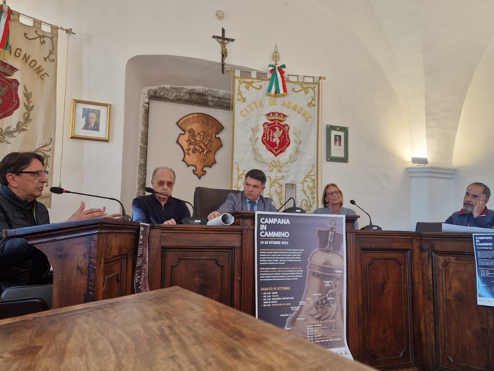 L’iniziativa, promossa dall’Azienda Autonoma di Soggiorno e Turismo della Regione Molise, prenderà il via sabato 19 ottobre da Piazza Giovanni Paolo II ad Agnone, per poi fare tappa a Termoli il giorno successivo, attraversando dieci comuni dell’entroterra (Trivento, Roccavivara, Montefalcone, Castelmauro, Acquaviva Collecroce, Palata, Montecilfone, Guglionesi e San Giacomo degli Schiavoni). Il progetto, denominato “La Campana in Cammino”, è stato presentato ieri mattina nella sala consiliare di Palazzo San Francesco alla presenza del presidente della Provincia di Isernia, Daniele Saia, dell’onorevole Remo Di Giandomenico, del giornalista Maurizio Varriano, e di Pasquale e Gabriella Marinelli, eredi dell’antico opificio di bronzi, insieme ai sindaci di Trivento e Roccavivara. La conferenza stampa è stata aperta con l’inno del Cammino dal titolo: ‘L’importante andare avanti’ suonato e cantato dall’artista Lino Rufo.