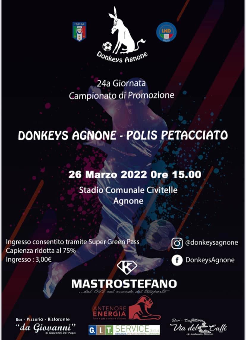 Anche il mondo del calcio dilettantistico decide di prendere posizione contro la guerra in Ucraina. Nell’ambito della “Giornata della Pace”, attesa domani ad Agnone, le squadre del campionato di Promozione molisana, Donkeys Agnone e Polis Petacciato, si mostreranno solidali al…
