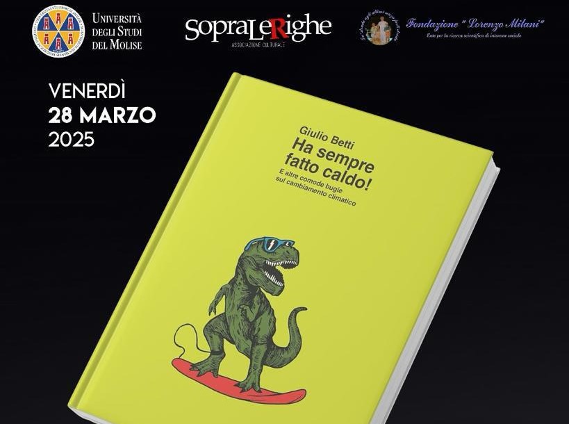 Domani, venerdì 28 marzo 2025 si terrà l’ultimo incontro della rassegna culturale “TermolinVita – È l’unica terra che abbiamo” organizzata dall’Associazione Sopralerighe e dalla Fondazione “Lorenzo Milani”, con il patrocinio di Slow Food Basso Molise. Interverrà Giulio Betti, meteorologo e climatologo presso il CNR di Firenze e Consorzio Lamma. Noto per la sua presenza in trasmissioni televisive, come Kilimangiaro in onda su RAI 3, e per la sua capacità divulgativa Betti presenterà il suo libro Ha sempre fatto caldo!