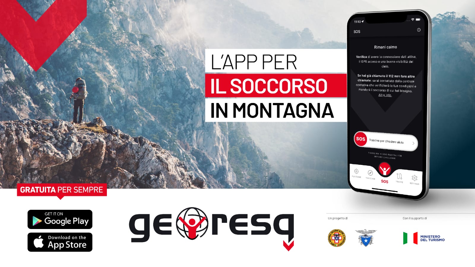 ll Club Alpino Italiano (CAI) e il Corpo Nazionale Soccorso Alpino e Speleologico (CNSAS), congiuntamente al Ministero del Turismo, annunciano importanti novità per GeoResQ (www.georesq.it), applicazione dedicata alle attività in montagna in grado di inviare una richiesta di aiuto quando ci si trova in pericolo e si ha bisogno di soccorso: grazie ai fondi straordinari che il MITUR ha stanziato a favore del Cai, dal 10 luglio, l’applicazione è totalmente gratuita e completamente rinnovata per migliorare l’esperienza degli utenti.