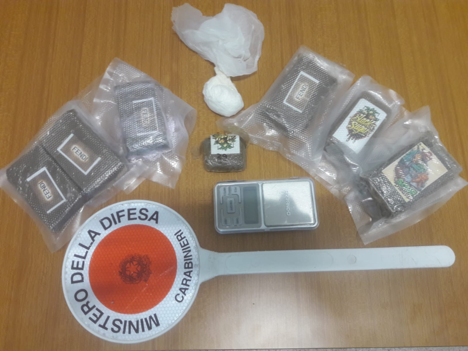 I militari operanti, all’esito di segnalazione pervenuta al 112, individuavano una persona in stato di agitazione che aveva sbarrato una strada comunale con delle fioriere a seguito di discussioni con alcuni vicini. Riportatolo alla calma, i Carabinieri lo accompagnavano presso la sua abitazione dove avevano modo di notare della sostanza stupefacente all’interno della stessa. Per tale motivo procedevano di iniziativa a perquisizione domiciliare all’esito della quale rinvenivano in più punti dell’appartamento diversi involucri risultati contenere sostanza stupefacente. Più nello specifico individuavano e sequestravano un totale di grammi 730 circa di sostanza stupefacente risultata positiva al narcotest all’hashish suddivisa in 7 panetti e 22 grammi di sostanza stupefacente risultata positiva al narcotest alla cocaina oltre un bilancino di precisione verosimilmente utilizzato per la pesatura della sostanza.