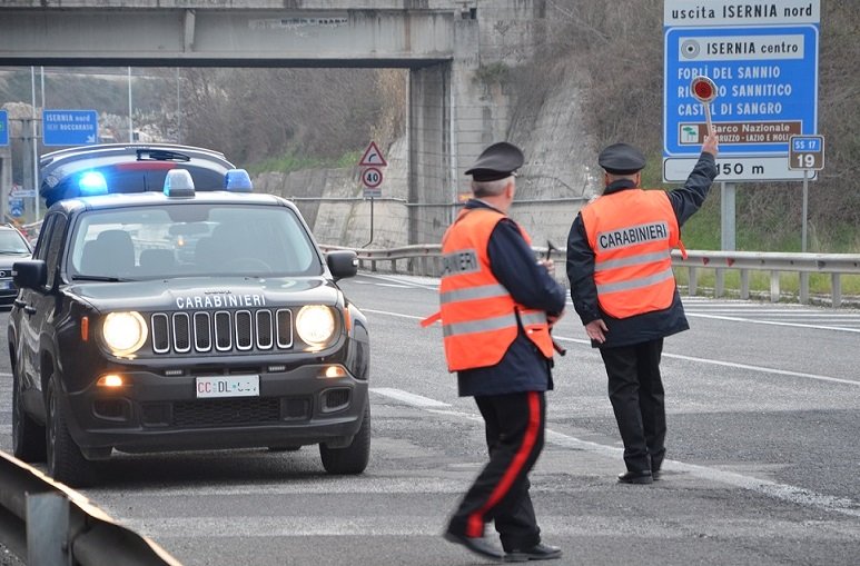 Un mirato servizio di controllo straordinario del territorio, è stato predisposto in quest’ultimo fine settimana dai Carabinieri in varie zone della provincia di Isernia, al fine di contrastare ogni forma di criminalità e di illegalità. Ad agire pattuglie dei Nuclei Operativo e Radiomobile e delle Stazioni territorialmente competenti delle Compagnie di Isernia, Venafro e Agnone, affiancate da personale del Nucleo Investigativo del Comando Provinciale di Isernia e unità cinofile dell’Arma. Numerosi i posti di blocco istituiti, anche con l’impiego di una Stazione Mobile, nei punti nevralgici della provincia, con particolare riferimento alle arterie di collegamento con le limitrofe regioni della Campania, del Lazio e dell’Abruzzo, nel corso dei quali sono stati eseguiti accertamenti su centocinquanta veicoli in transito, identificate centosettantacinque persone tra conducenti e passeggeri, e nei casi sospetti si è proceduto ad effettuare perquisizioni per la ricerca di armi, droga e refurtiva. Accertamenti hanno riguardato anche sei locali pubblici al fine di riscontrare eventuali violazioni in materia amministrativa e igienico-sanitaria. Dieci invece sono state le violazioni riscontrate alle norme del Codice della Strada, otto gli alcoltest eseguiti per accertare una eventuale guida in stato di ebrezza e tre i veicoli sottoposti a sequestro poiché privi di copertura assicurativa. Inoltre controlli sono stati disposti nei confronti di venti pregiudicati, attualmente sottoposti a misure cautelari o di prevenzione, per spaccio di stupefacenti, furto, truffa, ricettazione ed altri reati contro la persona ed il patrimonio. Infine nei confronti di un giovane, di nazionalità nordafricana, scattava una segnalazione alla Prefettura di Isernia in quanto trovato in possesso per uso personale, di un involucro contenente sostanze stupefacenti del tipo hashish, che veniva sottoposto a sequestro.