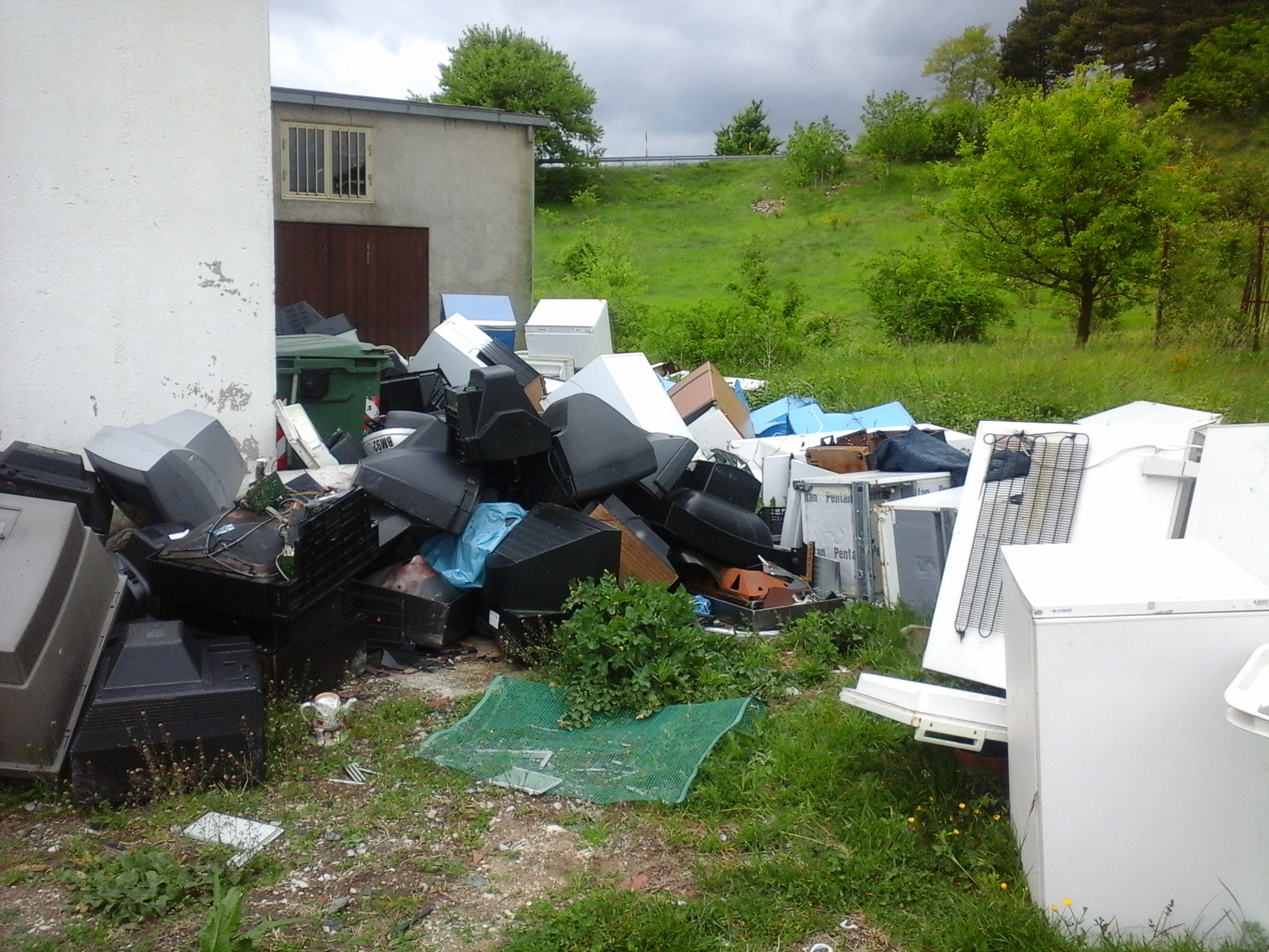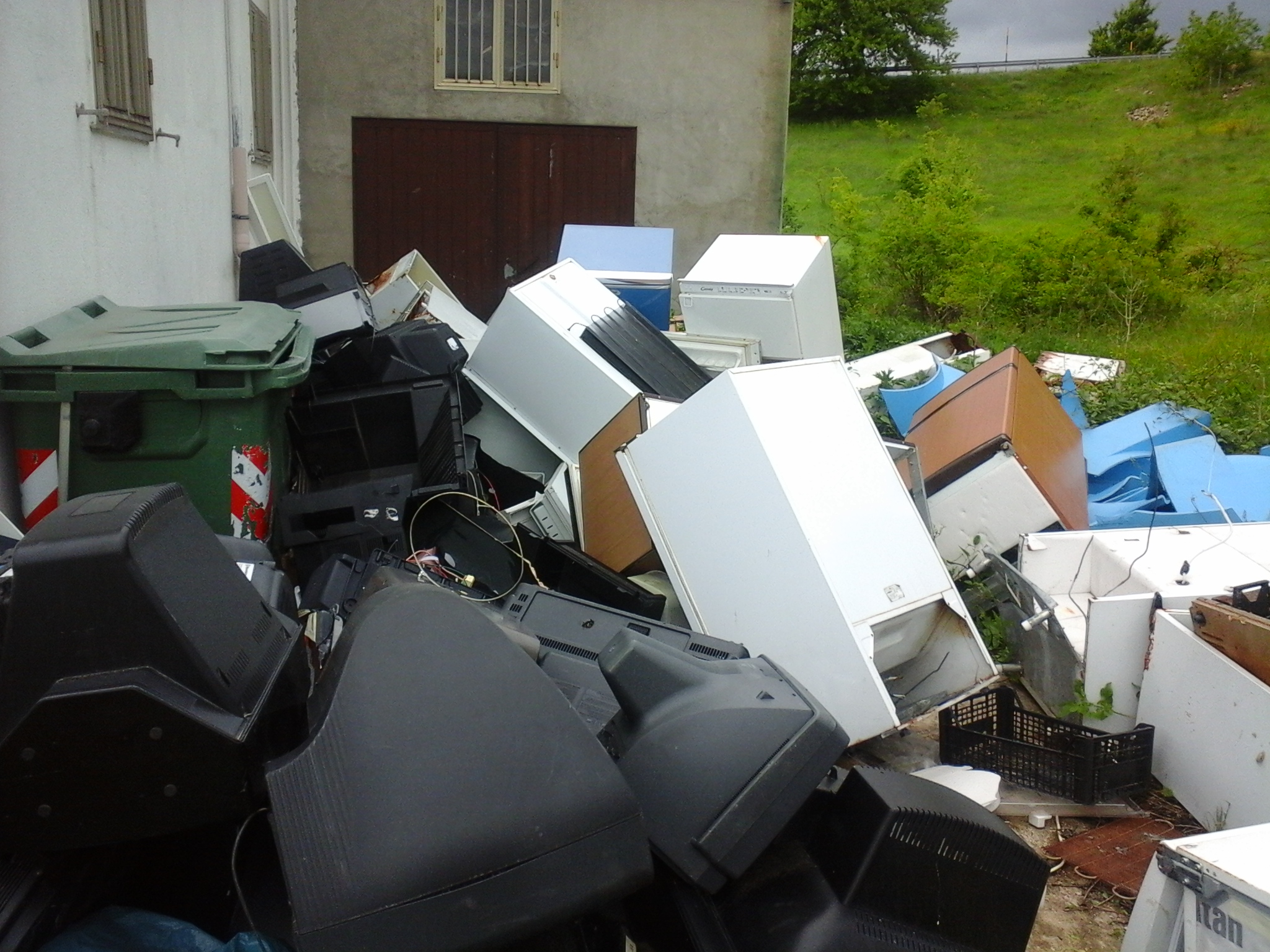 Non c’è bisogno di molti commenti: pneumatici, frigoriferi, mobili, materiali e rifiuti speciali di ogni genere abbandonati sul terreno, senza alcuna protezione. Una discarica abusiva in piena regola.