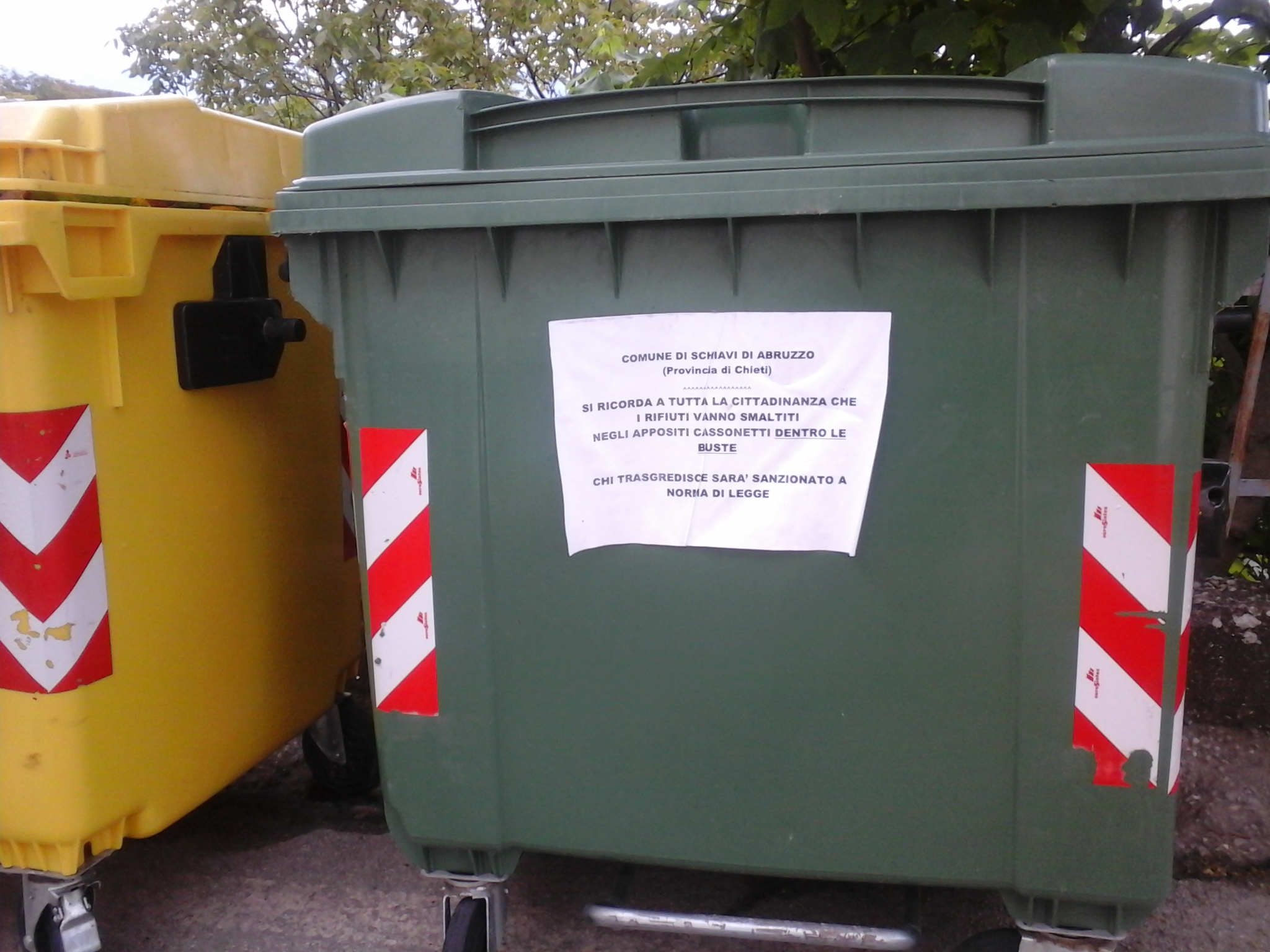 E’ il messaggio perentorio fatto affiggere dal Comune, quindi presumibilmente dal sindaco Luciano Piluso o da qualche zelante funzionario, nei giorni scorsi, sui cassonetti della nettezza urbana a Schiavi di Abruzzo.