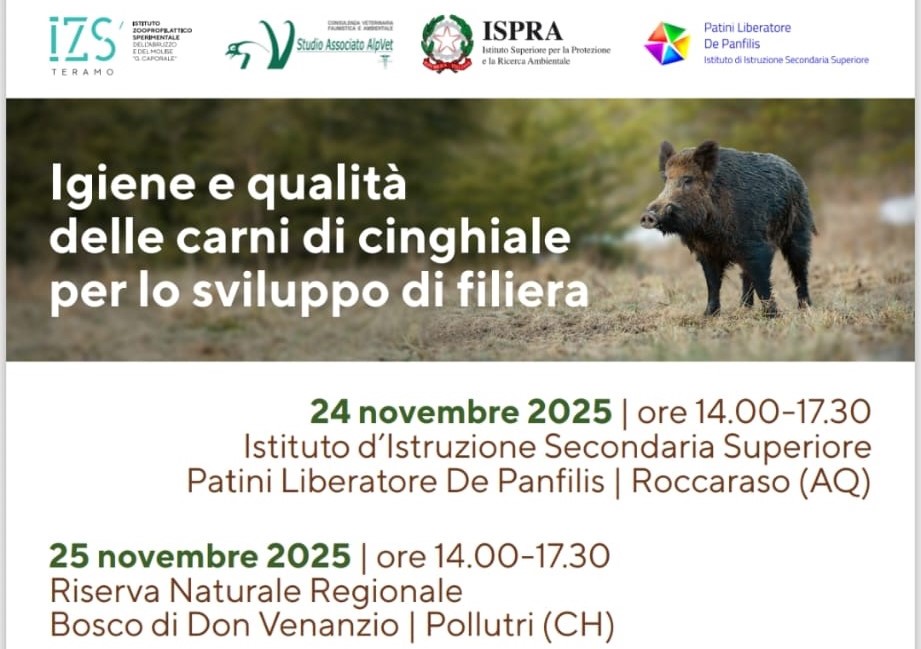 dell’Alberghiero. L’evento del pomeriggio è riservato a macellai, norcini e ristoratori della Regione Abruzzo. La partecipazione è aperta anche a Veterinari, a operatori della Polizia Provinciale e cacciatori