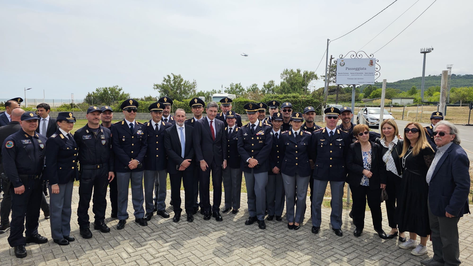 Si è svolta questa mattina a Fossacesia (CH), alla presenza del Capo della Polizia – Direttore Generale della Pubblica Sicurezza, Prefetto Vittorio Pisani, la cerimonia di intitolazione della Passeggiata sul Lungomare Gino Bartali al Commissario Maurizio Formisano, all’Assistente Fabrizio Di Giambattista e all’Assistente Valerio Valentini, appartenenti alla Polizia di Stato e Vittime del Dovere, che esattamente 20 anni fa, l’11 maggio del 2005, persero la vita a causa di un incidente aereo avvenuto a 5 miglia dalla costa di Fossacesia, durante un volo di ricognizione a bordo di un aeromobile della flotta del 11° Reparto Volo della Polizia di Stato di Pescara.