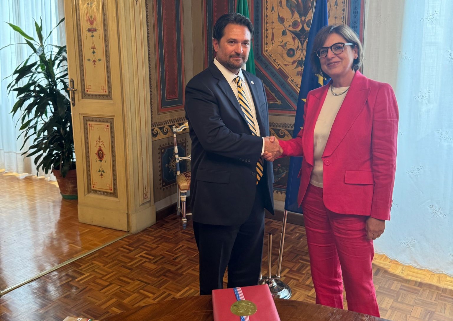 Il Prefetto di Campobasso, Michela Lattarulo, ha ricevuto oggi, presso il Palazzo del Governo, il Console Generale degli Stati Uniti d’America a Napoli, Terrence Flynn.