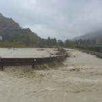 Il fiume Treste erode la fondovalle. La piena ha rotto gli argini e sta mangiando letteralmente la strada.