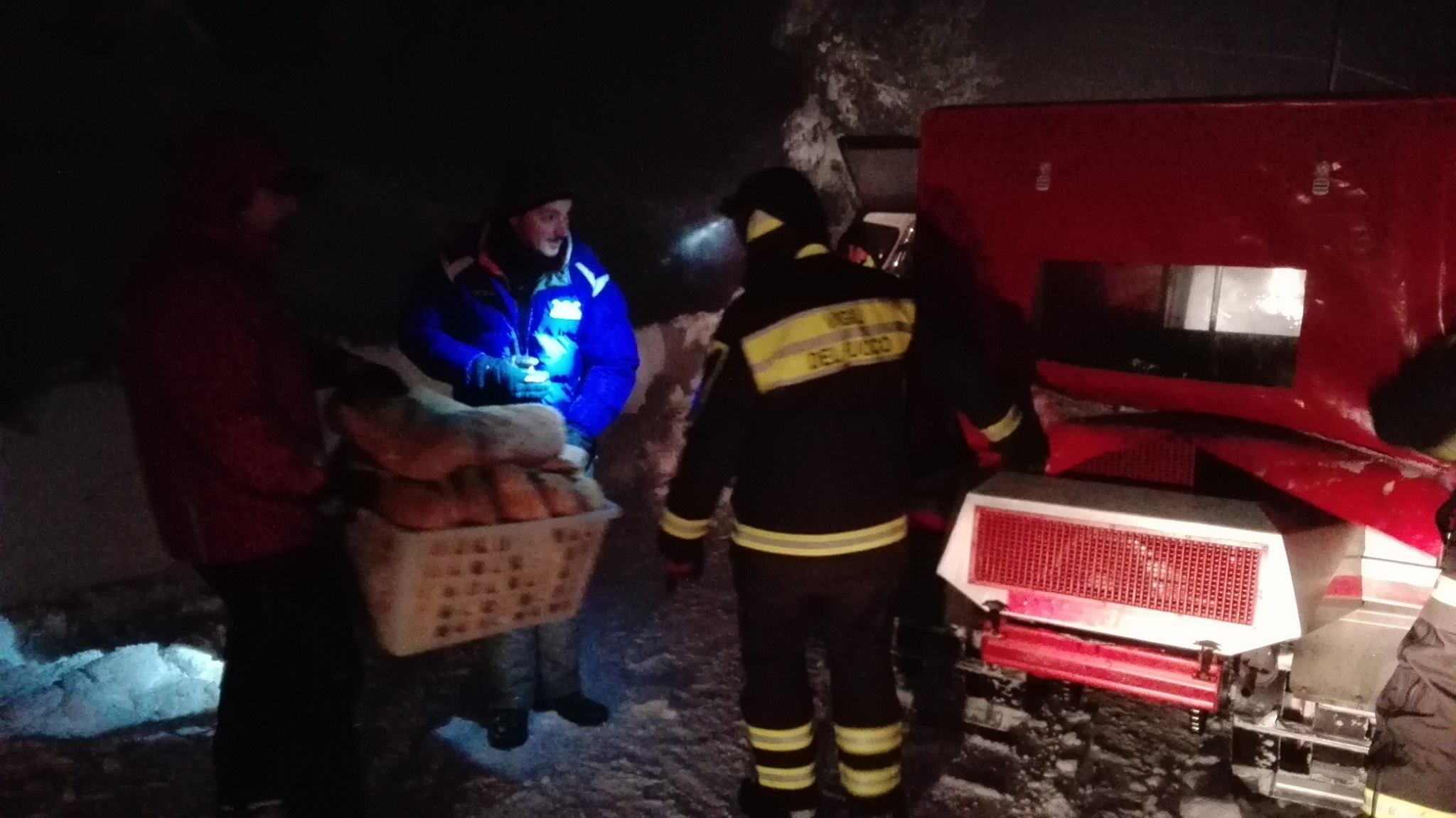 SCHIAVI DI ABRUZZO – Il gatto delle nevi dei Vigili del fuoco rifornisce di viveri le frazioni di Schiavi.