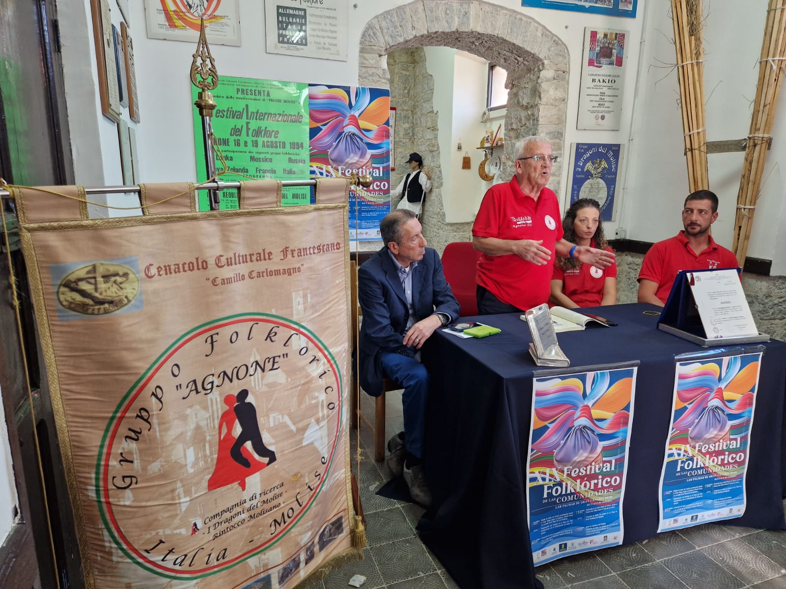 Il Gruppo Folklorico Agnone saluta il Molise con una conferenza stampa: oggi spiccherà il volo per la Spagna, dove a Las Palmas (Isole Canarie) dal 5 all’8 ottobre rappresenterà l’Italia al XIX festival internazionale del folklore con sodalizi provenienti dal resto d’Europa.