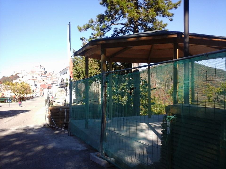 Polemiche a Schiavi di Abruzzo per un manufatto in legno eretto proprio alle spalle dell’area dedicata ai militari.