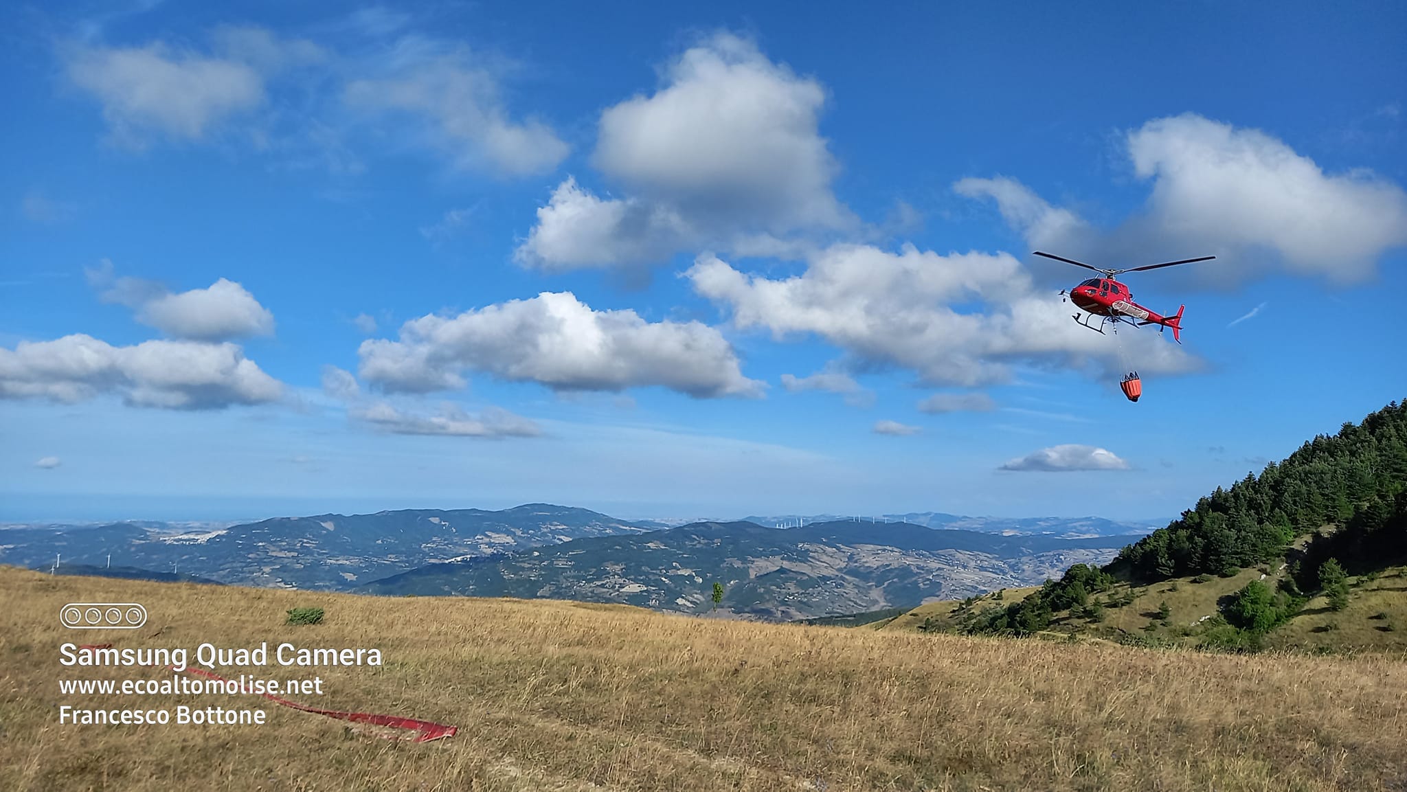 L’elicottero sta facendo la spola tra il vicino Molise, dove va a rifornirsi di acqua, e il territorio di Castiglione Messer Marino dove insiste l’incendio. I Vigili del fuoco hanno montato e rifornito di acqua una vasca dalla quale Orso Bruno può attingere in modo da dimezzare i tempi di intervento moltiplicando così i lanci.