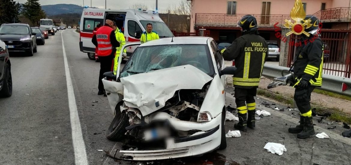 Impatto fra due auto, tre persone rimaste ferite. Sul posto Carabinieri e Vigili del fuoco