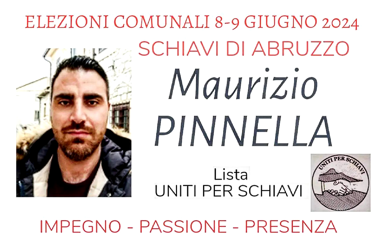 «Eccomi qui, a distanza di cinque anni. Con lo stesso impegno e con la stessa passione a garantire la mia presenza per il bene del nostro amato paese, Schiavi di Abruzzo. – spiega il vicesindaco e nuovamente candidato, Maurizio Pinnella – Insieme alla mia squadra, lista “Uniti per Schiavi” con Piluso sindaco, potremmo continuare a guardare al futuro, senza tralasciare nulla al presente. L’8 e 9 giugno sarei molto felice di poter contare sul vostro appoggio. Per continuare a lavorare e collaborare insieme».