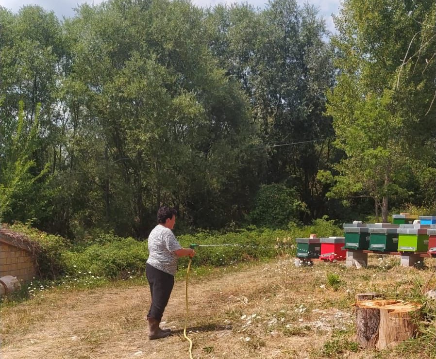 Nell’emergenza incendi a Castiglione Messer Marino la “foto del giorno” è sicuramente questa: nonna Antonietta in modalità “pompiere” che con un getto d’acqua bagna la zona antistante l’apiario del nipote Simone.