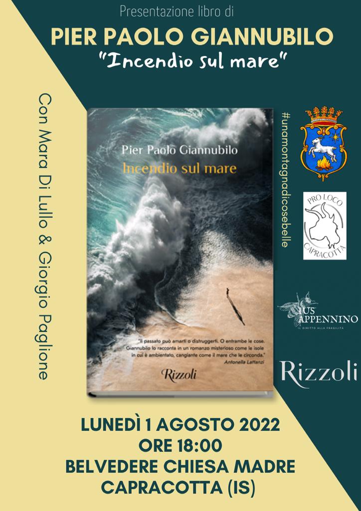 Lunedì 1 agosto, dalle ore 18, verrà presentato a Capracotta, nel luogo del Molise più vicino al cielo, presso il belvedere della chiesa madre, l’ultimo libro di Pierpaolo Giannubilo, “Incendio sul mare”. L’evento è organizzato dal Comune in collaborazione con la Pro Loco. Il libro, edito da Rizzoli, si porterà dietro uno sfavillante clima di suspense a ritmi mediterranei. L’ambientazione è familiare a tanti, le isole Tremiti, che saranno il filo della tela invisibile della maestria di Giannubilo, già nella dozzina dei finalisti del premio Strega del 2019 con l’altro romanzo – sempre Rizzoli – “il Risolutore”. L’autore sarà accompagnato nella presentazione dalla professoressa Mara Di Lullo e dal poeta Giorgio Paglione. Non perdetevi questo appuntamento, a Capracotta, per #unamontagnadicosebelle.