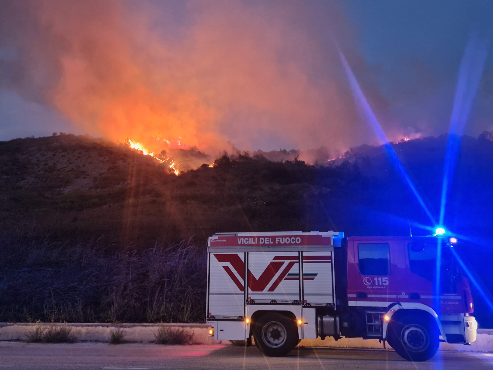 La zona interessata dal rogo è particolarmente impervia e inaccessibile per i mezzi gommati, questo rende intuibilmente complesse e difficoltose le operazioni di spegnimento. Con il calare dell’oscurità, inoltre, come da protocollo, si retrocede ad attività di mera vigilanza. La speranza è che l’umidità della notte e il calo delle temperature riescano a rallentare la propagazione del fuoco.