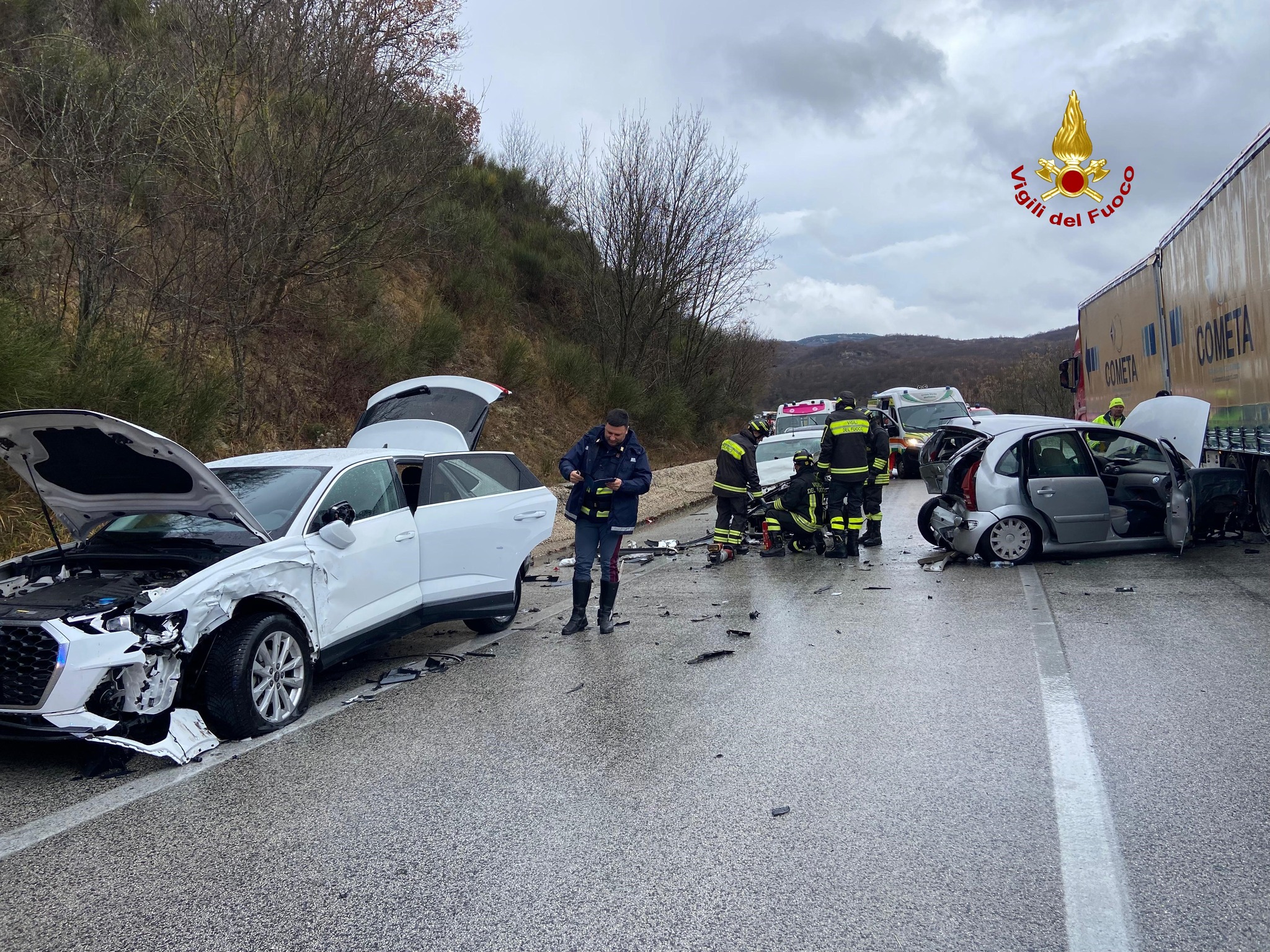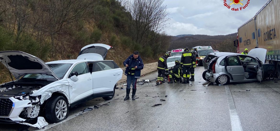 Incidente stradale in mattinata sulla Statale 17, nei pressi di Pettoranello del Molise. Tre le auto coinvolte con tre feriti in condizioni abbastanza serie. Sul posto vigili del fuoco, polizia stradale anas e tre ambulanze del 118. Traffico deviato sulla viabilità secondaria, con grosse difficoltà sulla principale arteria del Molise, che collega Campobasso a Isernia.