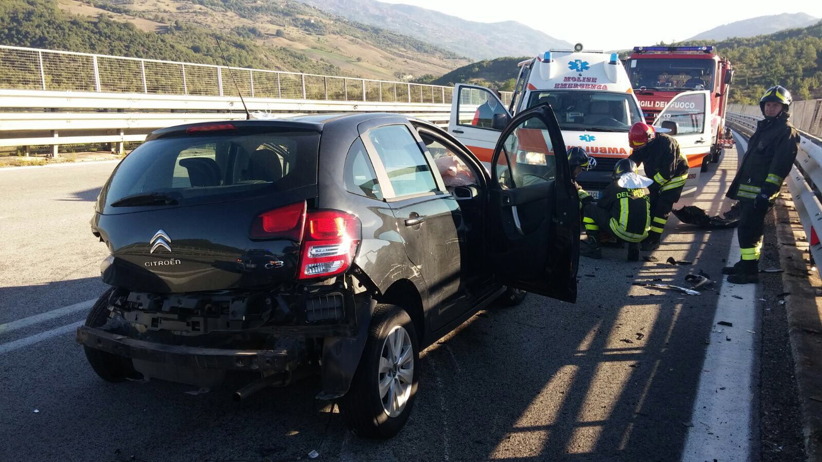In realtà la causa dell’incidente è stato lo scoppio di una ruota o la rottura di un braccetto. Vorrei usare questa pagina per ringraziare tutti coloro che mi hanno soccorsa, dal primo ragazzo che si è fermato e ha chiamato i soccorsi alle forze dell’Ordine ai medici e paramedici dell’Ambulanza ai medici ed infermieri dell’ospedale Caracciolo di Agnone. Precisi, professionali, attenti e infinitamente umani. Mi hanno aiutata e confortata per tutto il tempo in cui mi hanno sottoposta ad accertamenti e tenuta in osservazione. Agnone è ormai da cinque anni la mia seconda casa. Grazie».
