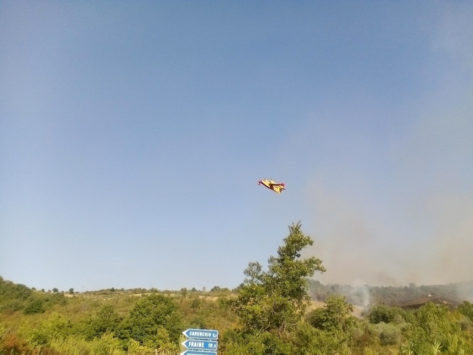 di famiglie, accolte da altri compaesani in abitazioni più distanti dal fronte del fuoco. Uno dei canadair è dovuto intervenire altrove, lungo la fondovalle Trigno per un altro rogo appiccato tra Schiavi di Abruzzo e Poggio Sannita. Adesso, da pochi minuti, è rientrato e sta effettuando, unitamente all’altro aereo, decine e decine di lanci anche in prossimità dell’abitato. E’ vero disastro. Ho avuto paura, non lo nego. Bisogna trovare il bastardo che ha provocato tutto questo inferno di fuoco. Non si rende conto dei danni che ha provocato. La nostra pineta completamente incenerita e anche il ristorante è stato distrutto in buona parte. Un inferno di fuoco, mai visto nulla di simile».