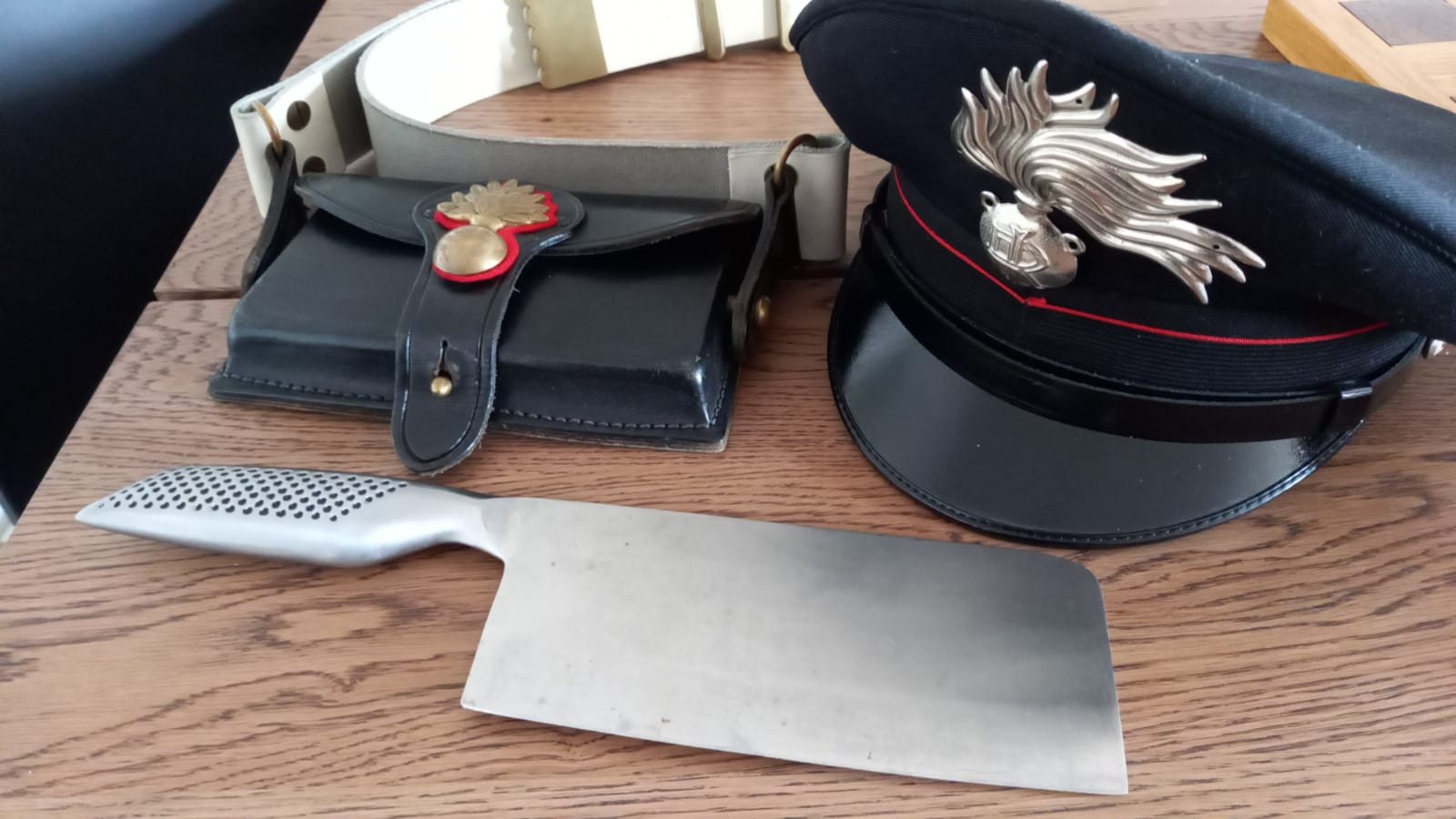 Oltre ad un grosso coltello e alla mannaia utilizzati per minacciare la donna, veniva sequestrato un considerevole numero di munizioni da caccia con elevato potenziale offensivo irregolarmente detenute.