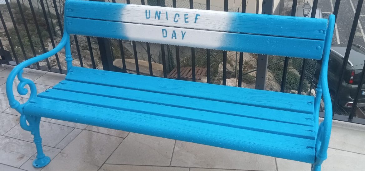 La panchina, dipinta nel caratteristico colore azzurro UNICEF, sarà accompagnata da una targa con il motto “Insieme per ogni bambino”, per ricordare ogni giorno l’importanza di una comunità attenta, accogliente e inclusiva.