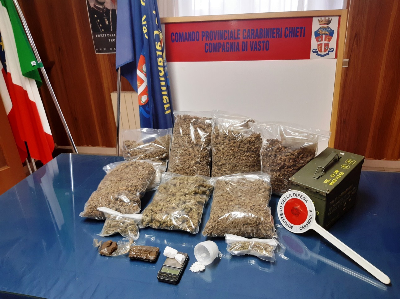 Intervengono per una lite in famiglia, trovano tre chili e mezzo di marijuana: arresto nel Vastese