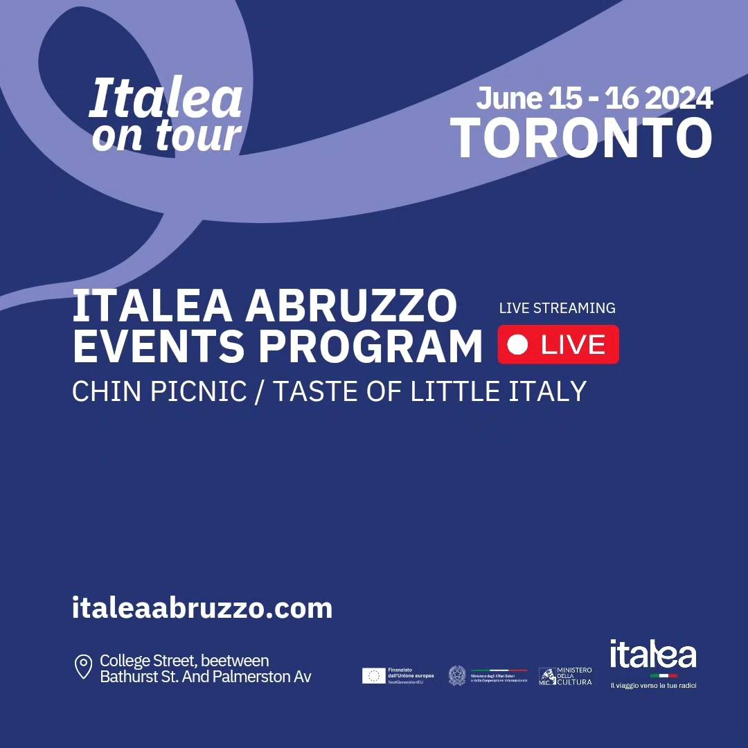 Nel contesto dell’Anno delle radici italiane nel mondo, dedicato all’accoglienza degli italo discendenti nei territori d’origine, ITALEA – il programma di promozione del turismo delle radici lanciato dal Ministero degli Affari Esteri e della Cooperazione Internazionale all’interno del progetto PNRR e finanziato da NextGenerationEU per il periodo 2022-2025 – annuncia con entusiasmo la partecipazione di ITALEA ABRUZZO alla cinquantottesima edizione del CHIN PICNIC “TASTE OF LITTLE ITALY”. Questo prestigioso evento si terrà a Toronto (Canada) dal 14 al 16 giugno ed è organizzato da Chin Radio/TV International.