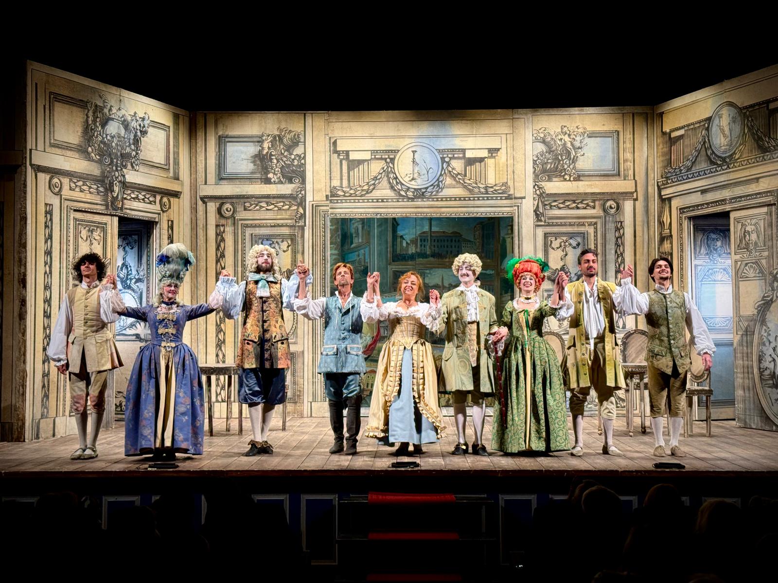 A suggellare il successo, domenica pomeriggio, è stata la rappresentazione de La Locandiera di Carlo Goldoni, portata in scena da Torino Spettacoli con la regia di Enrico Fasella. L’atmosfera settecentesca è stata resa ancora più suggestiva dalla scenografia firmata da Emanuele Luzzati, mentre sul palco, tra costumi d’epoca e battute sagaci, ha brillato un cast d’eccezione: Miriam Mesturino, impeccabile nei panni di Mirandolina, ha conquistato il pubblico affiancata da Luciano Caratto, Alessandro Marrapodi, Barbara Cinquatti, Stefano Fiorillo, Maria Elvira Rao, Stefano Bianco, Mattia Tarantino, David Daryl Miceli e Andrea Pampanini.