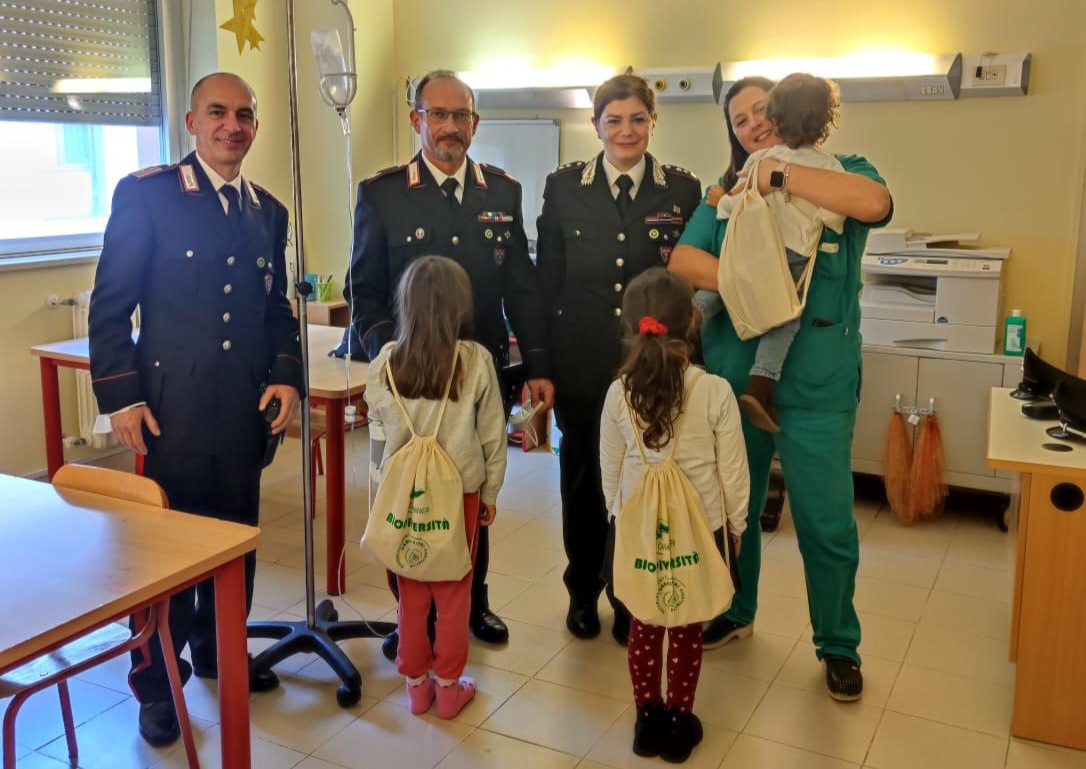 Nella giornata odierna il personale civile e militare, insieme al Comandante del Reparto Ten. Col. Monica Sciarra, hanno fatto visita ai reparti pediatrici degli ospedali di Avezzano e Sulmona ed anche ad una casa famiglia, consegnando ai piccoli dei regali costituiti da materiale didattico-educativo sul tema dell’ambiente e della biodiversità, zainetti, borracce, giochi ed oggetti in legno quali simbolo della vicinanza dell’Arma dei Carabinieri a coloro che vivono momenti di difficoltà soprattutto in un giorno di festa e sono stati organizzati brevi laboratori di educazione ambientale per far vivere una giornata speciale e richiamare tutti al ruolo di protagonisti della tutela dell’ambiente.