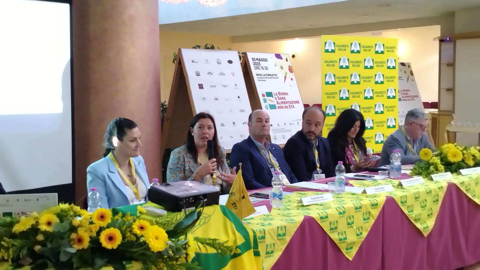 Si è concluso con un grande evento presso l’hotel “Le Cupolette” di Vinchiaturo, il Progetto “La buona e sana alimentazione non ha età”. Alla giornata finale ha preso parte anche la Responsabile Nazionale di Coldiretti Donne Impresa, Chiara Bortolas. A fare gli onori di casa la Responsabile Regionale di Coldiretti Donne Impresa Molise, Manuela Virtuoso, il Presidente Regionale di Coldiretti Molise, Claudio Papa, ed il Direttore Regionale di Coldiretti, Aniello Ascolese che ha moderato i lavori. Presenti all’evento anche: il Responsabile tecnico GAL Molise verso il 2000, Adolfo Fabrizio Colagiovanni, Rita D’Addona dell’Ufficio Scolastico regionale, il Presidente Auser Molise e la Direttrice della stessa associazione, Dante Leva, la nutrizionista Raffaelle Mastrantuoni, e Cristina Ratino, oltre ai dirigenti scolastici e una rappresentanza dei docenti, bambini, ragazzi degli istituti scolastici, accompagnati dai loro genitori, e degli associati dei circoli anziani coinvolti.