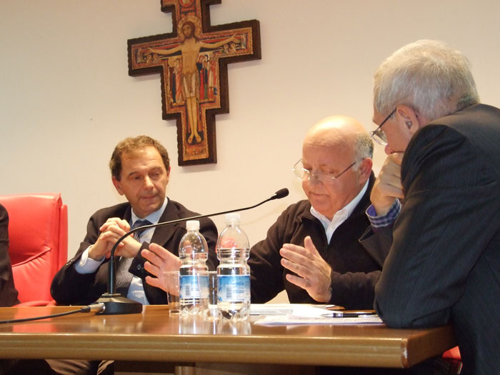 Dopo essere stato, nottetempo, a Castelguidone, per un sopralluogo inatteso sulle frane, il governatore è passato a salutare don Alberto Conti, (al centro nella foto, ndr) il parroco e direttore diocesano della Caritas. Un incontro, di pochi minuti e non certo il primo tra i due personaggi, che deve aver segnato il governatore tanto da spingerlo a promettere pubblicamente per il parroco di montagna un incarico regionale.
