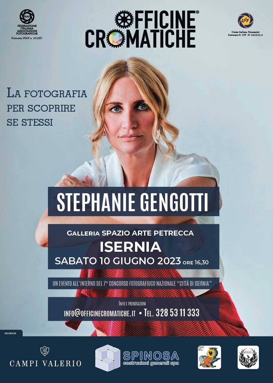 Sarà la fotografa italo-francese Stephanie Gengotti l’ospite d’onore della cerimonia di premiazione della 7^ Edizione del Concorso Fotografico Nazionale “Città di Isernia” – Tema obbligato “Movimento”, che si terrà il 10 giugno 2023 alle 16.30 nella Galleria Spazio Arte Petrecca di Isernia. Il concorso fotografico è stato organizzato dall’associazione fotografica isernina “Officine Cromatiche” ed ha visto la partecipazione di ben 224 fotografi in rappresentanza di tutte le regioni d’Italia.