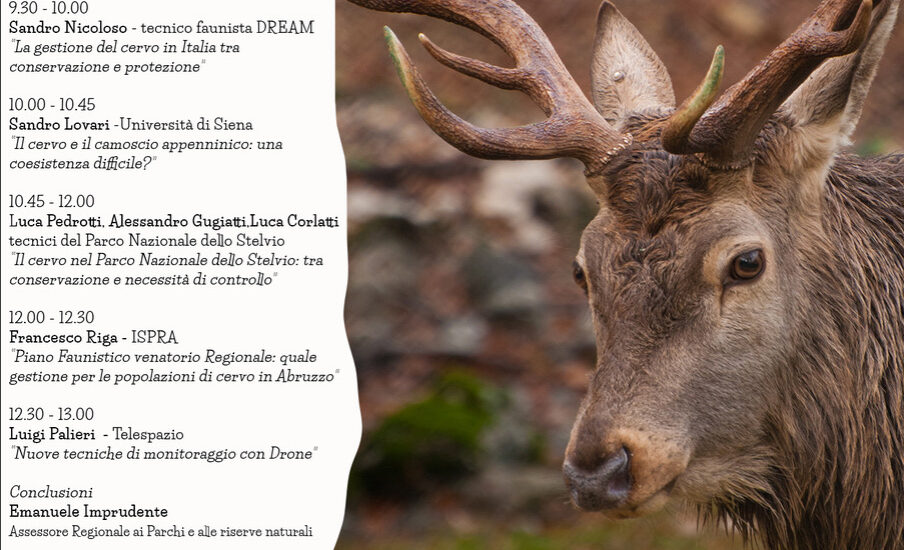 Luca Pedrotti, Alessandro Gugiatti e Luca Corlatti, tecnici del parco nazionale dello Stelvio relazioneranno sul tema: “Il cervo nel parco dello Stelvio, tra conservazione e necessità di controllo”. A seguire Francesco Riga dell’Ispra affronterà il delicato tema del piano faunistico venatorio della Regione Abruzzo, in particolare sugli aspetti della gestione per le popolazioni di cervo. In chiusura Luigi Palieri, di Telespazio, sulle nuove tecniche di monitoraggio con drone, mentre le conclusioni saranno affidate all’assessore regionale ai parchi e alle riserve naturali, Emanuele Imprudente.