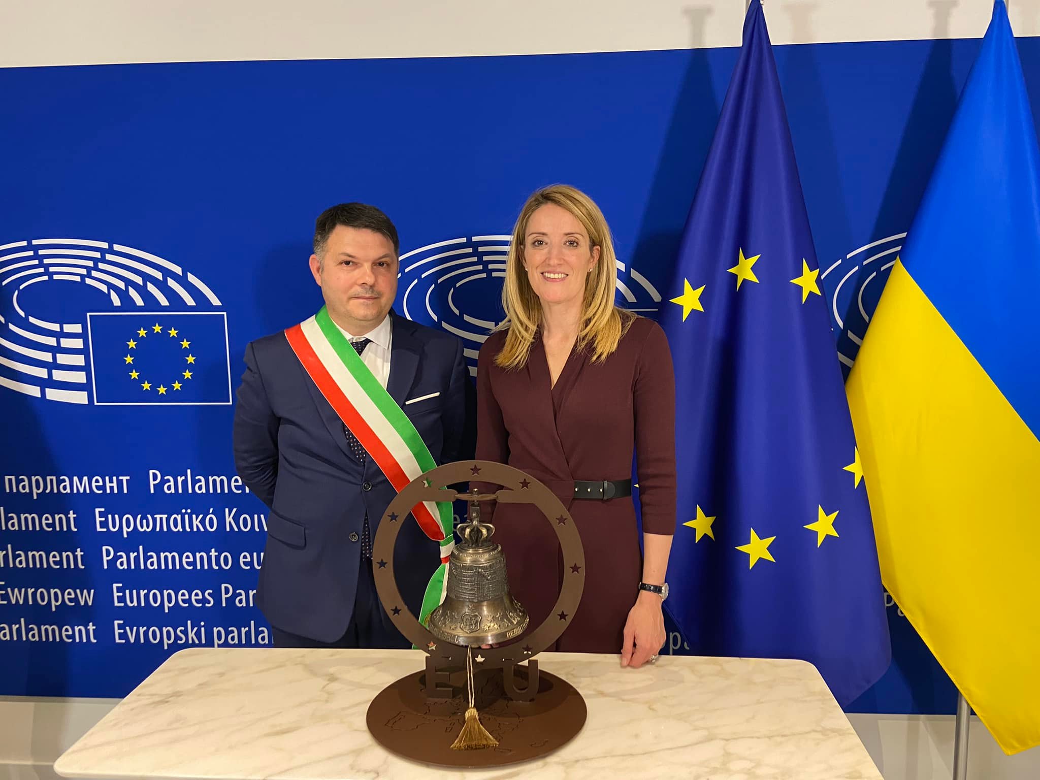 Un momento storico per la comunità agnonese e per l’intera comunità molisana. Pochi minuti fa, insieme a Pasquale ed Armando Marinelli della Pontificia Fonderia di Campane Marinelli di Agnone, all’on. Aldo Patriciello e al Presidente dell’Ordine dei Giornalisti del Molise Vincenzo Cimino, il sindaco Daniele Saia ha consegnato alla Presidente del Parlamento Europeo Roberta Metsola il prototipo della “Campana della Rinascita dalla Pandemia”.