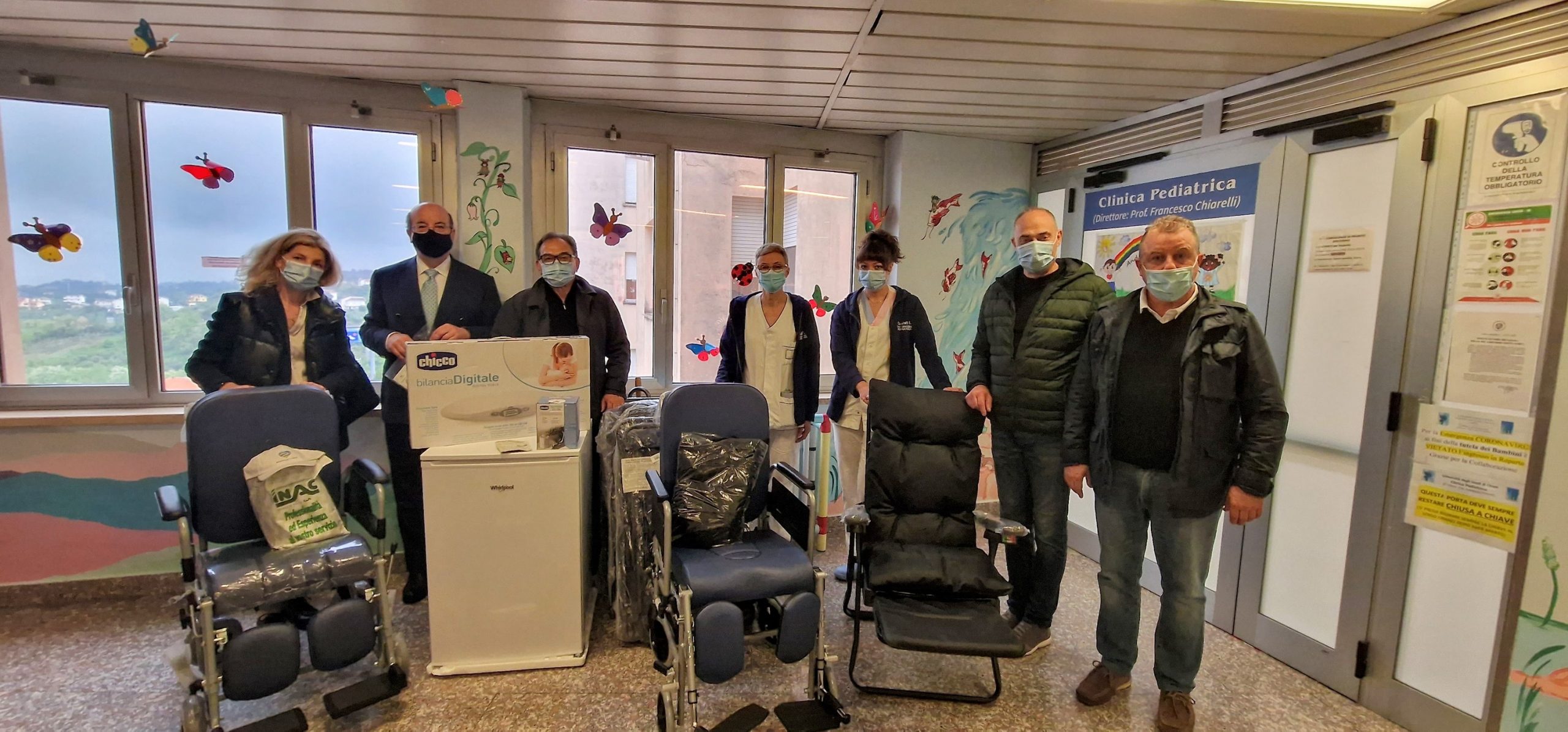 I materiali forniti consistono in due carrozzine per il trasporto dei bambini, quattro sedie sdraio per l’assistenza dei familiari, un frigo per la conservazione dei medicinali, una bilancia pesa neonato e uno scalda biberon. “Le donazioni laiche da parte di enti e associazioni sono linfa vitale che consentono una migliore funzionalità del nostro reparto” afferma il Direttore del reparto, il Prof. Francesco Chiarelli “ringraziamo la Onlus Ruralità & Solidarietà ETS e la Società sportiva DADS Virtus Basket per la sensibilità dimostrata e ci auguriamo di continuare a collaborare sulla strada della solidarietà”.