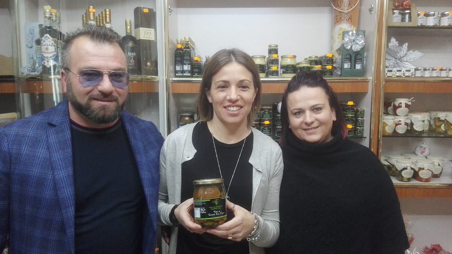 Con queste parole Daniela Sabatino, bomber della nazionale di calcio femminile, ha commentato, sulla sua seguitissima pagina Facebook, la visita che ieri pomeriggio ha fatto presso il punto vendita della “Tenuta Agricola Campati Srl“. La campionessa del calcio femminile, che passerà qualche giorno di vacanza a Castelguidone suo paese natale, ha incontrato i titolari dell’azienda agricola di Schiavi nota ormai a livello internazionale per la commercializzazione del tartufo. «E’ questo il vero oro della terra, della nostra terra» ha commentato la calciatrice della Nazionale passando in rassegna i vasetti e le confezioni di tartufo presenti sugli scaffali del punto vendita. Un incontro informale e piacevole tra la “regina” del calcio femminile e l’indiscusso “re” del tartufo dell’Alto Vastese, insomma tra due numeri uno, ciascuno nel suo campo.