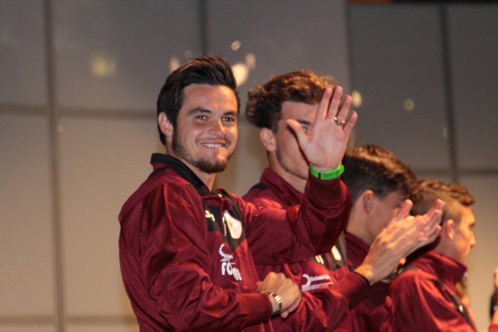 L’evento musicale è stato sponsorizzato dall’agenzia Ro.Ra. di Vincenzo Cannatelli, in collaborazione con Comune di Agnone, Pro loco, Kerres e Amici del teatro Italo Argentino e Polisportiva Olympia Agnonese. Sul palco allestito sotto il campanile della chiesa di Sant’Antonio, anche il presidente del sodalizio granata Antonio Melloni, il suo vice Fernando Sica e il tesoriere Angelo Iacovone. Per l’occasione Melloni ha spronato l’intera cittadina a stringersi intorno alla squadra di calcio che per l’ottava stagione consecutiva sarà ai nastri di partenza di un torneo impegnativo come quello di serie D. “Non senza difficoltà e sacrifici – ha detto il numero uno granata – anche quest’anno abbiamo allestito una rosa di tutto rispetto. In un campionato che vede la presenza di società blasonate e città di gran lunga superiore alla nostra, sia per numero di abitanti che per bacino economico – ha ricordato Melloni – il nostro obiettivo resta quello di una una salvezza tranquilla”. Poi alla domanda di Costantino Pierdomenico, presentatore della serata, in merito al ritorno sul mercato, Melloni ha risposto con un laconico “vedremo se sarà il caso, per ora va bene così”. Giuseppe Donatelli invece non ha voluto fare promesse, tuttavia ha dichiarato il massimo impegno per ripagare gli sforzi di una società seria e una piazza che resta tra le più calorose del panorama di quarta serie. Un ringraziamento particolare è andato all’impresa Forgione di Pescopennataro che per il secondo anno consecutivo sarà lo sponsor ufficiale dell’Olympia Agnonese. Testimonial dell’evento, gli agnonesi Stefano Patriarca, campione d’Italia di volley e Gloria Marinelli, medaglia di bronzo ai mondiali di calcio femminile under 17. (Le foto sono di Vittorio Labanca)