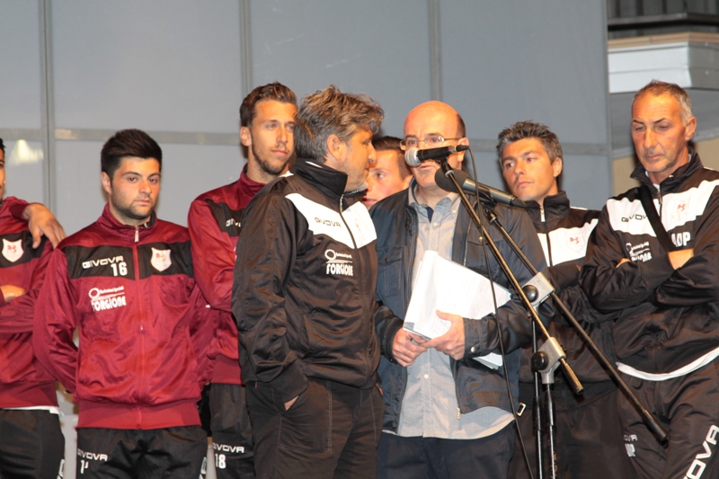 AGNONE. Oltre cinquecento persone ieri sera in largo Francesco Saverio Sabelli hanno salutato la nuova Olympia Agnonese. Gli uomini della rosa allenata da Giuseppe Donatelli, infatti, sono stati presentati ufficialmente a stampa e tifosi prima dell’atteso concerto del tenore pescarese, Piero Mazzocchetti.