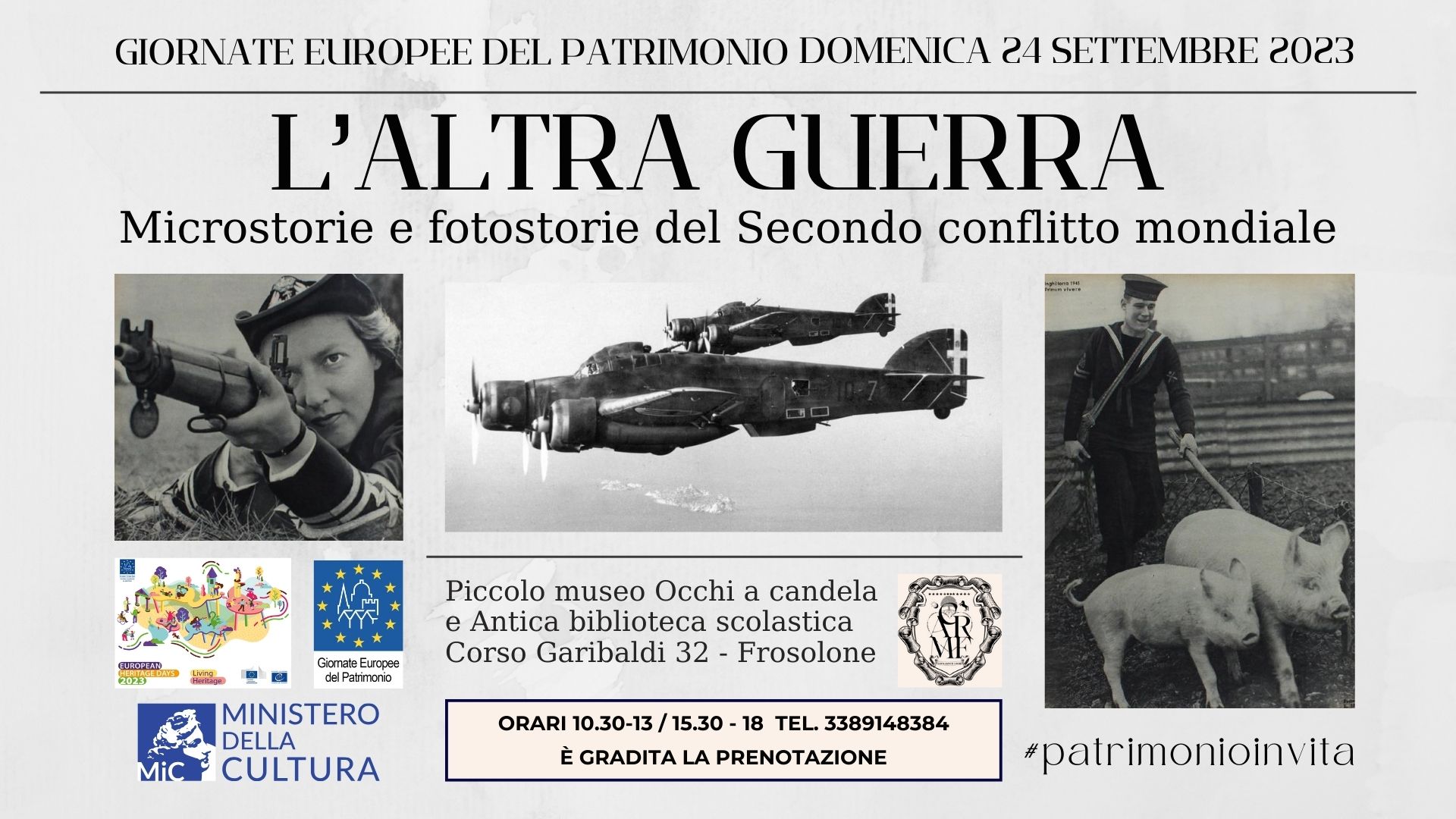 “L’altra guerra: microstorie e fotostorie del Secondo conflitto mondiale” è il tema scelto e la proposta per le Giornate europee del Patrimonio 2023 da parte del Piccolo museo Occhi a candela e Antica biblioteca scolastica. Domenica, negli orari 10.30-13, 15.30-18, si potrà partecipare alle visite guidate nei locali del museo in corso Garibaldi a Frosolone.