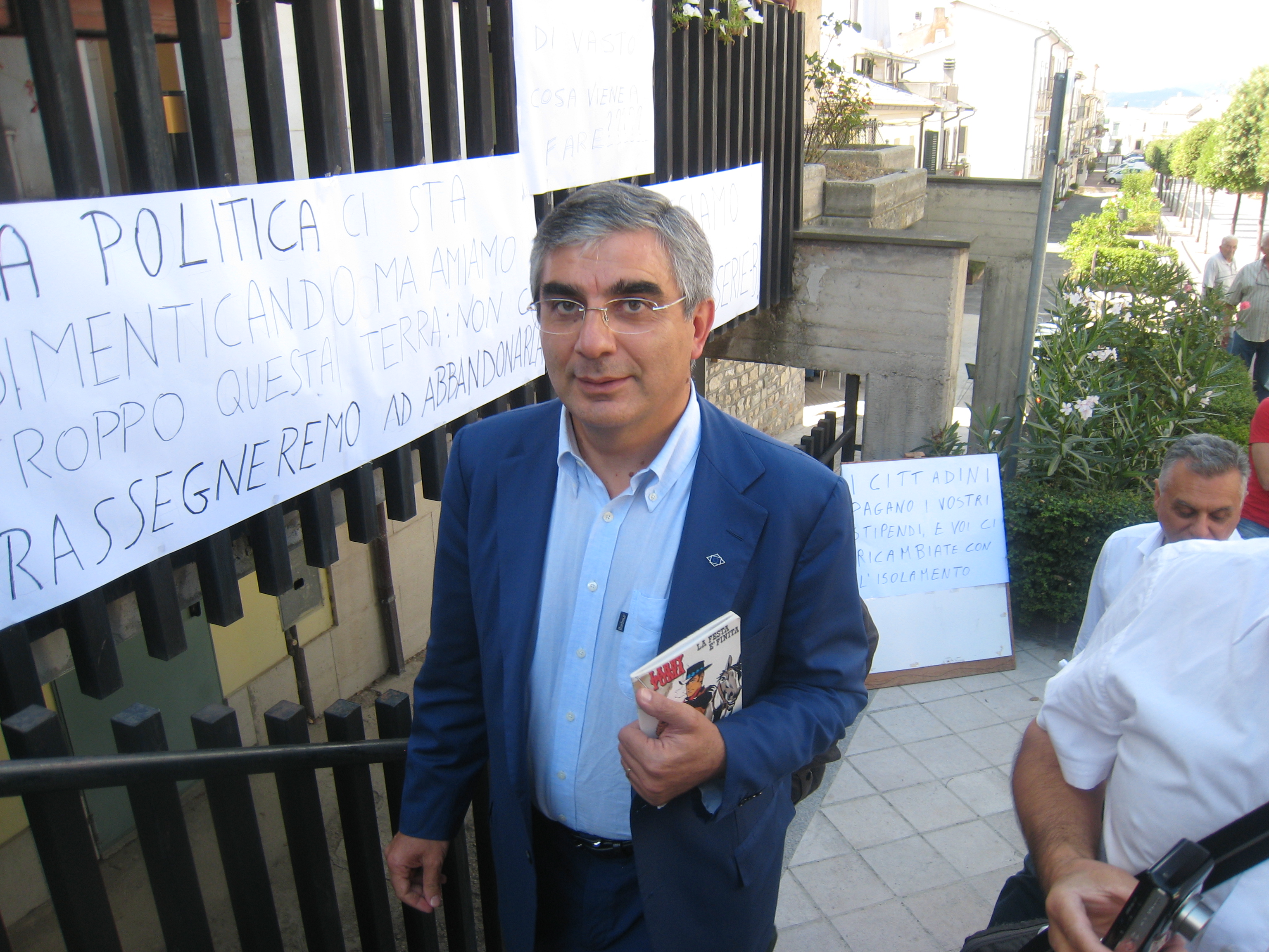 All’ingresso del palazzo municipale un cartello poneva la stessa domanda a Lapenna: «Che sei venuto a fare?». Perché il sindaco di Vasto è considerato uno dei responsabili della soppressione della guardia medica di Celenza.