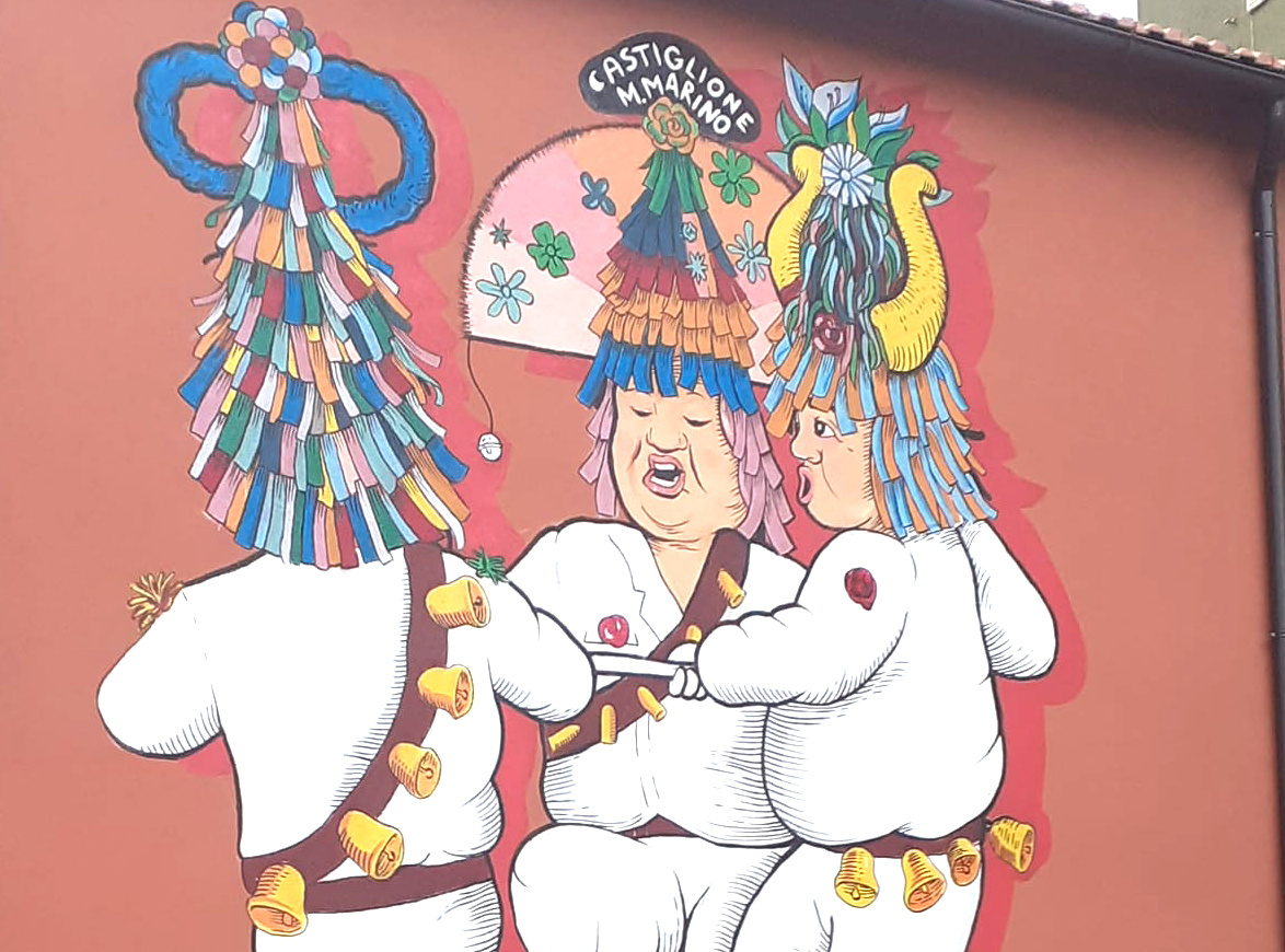 Le maschere di Carnevale tipiche di Castiglione Messer Marino immortalate in un murales. «In questi giorni l’associazione “Pulgenella Castiglionese” è stata impegnata nell’organizzare la realizzazione di un murales del nostro costume storico candidato al riconoscimento UNESCO. L’opera è stata realizzata dall’artista Luca Bruno, il quale ha fatto un eccellente lavoro. – spiegano dall’associazione – Ringraziamo di cuore il sindaco Felice Magnacca, l’assessore Mariano Lalli e tutta l’amministrazione per aver accolto, approvato e finanziato per intero la nostra iniziativa».