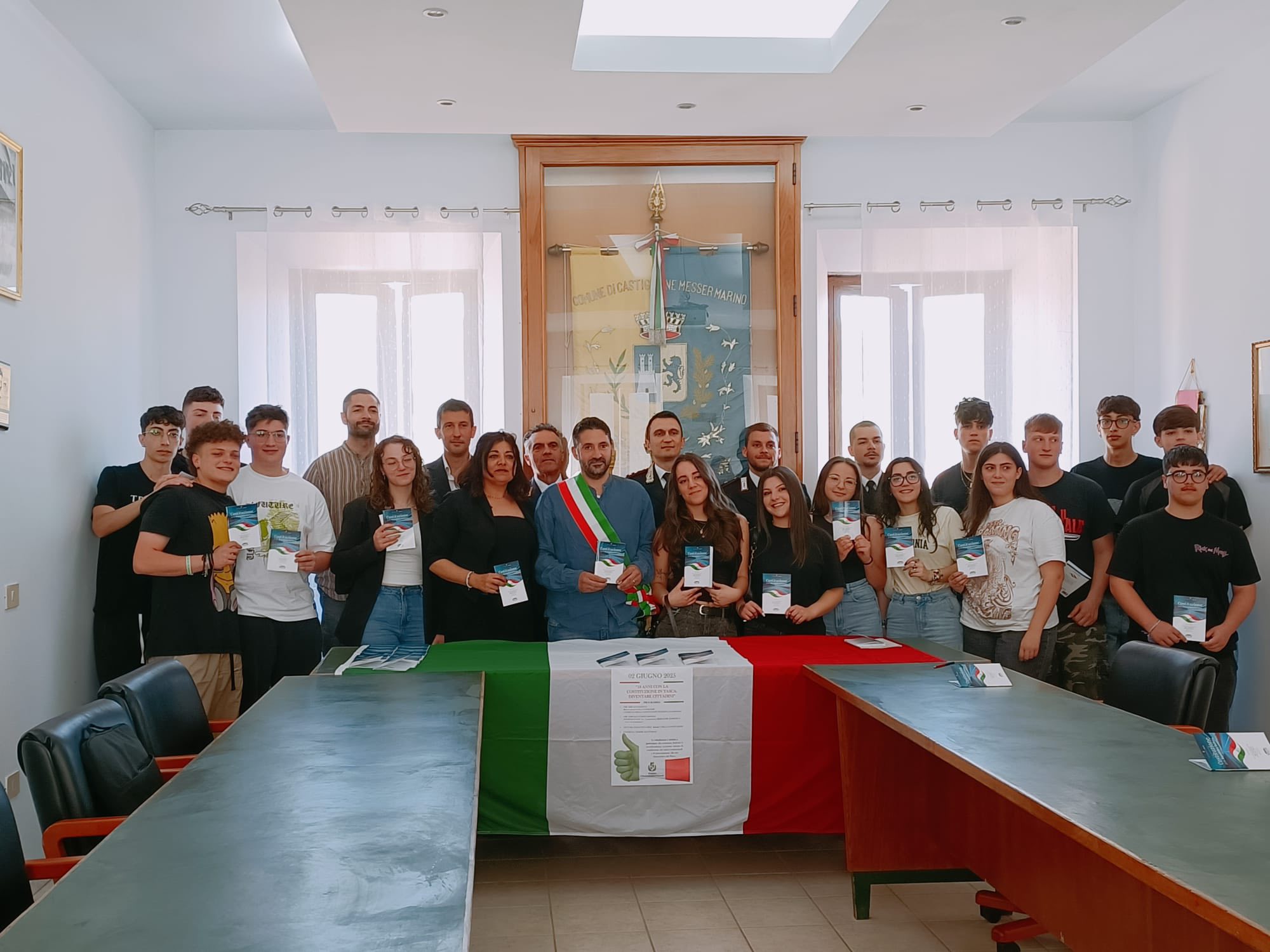 Avranno la possibilità di partecipare al voto, per il referendum abrogativo, per la prima volta i diciottenni di Castiglione Messer Marino che, nei giorni scorsi, hanno ricevuto in dono una copia della Costituzione vigente e la tessera elettorale. A consegnare la copia della legge istitutiva e fondante dello Stato l’assessore comunale Simone Fangio, in rappresentanza della sindaca Silvana Di Palma, e il capitano dei Carabinieri, il comandante della compagnia di Atessa, Francesco Giovine.