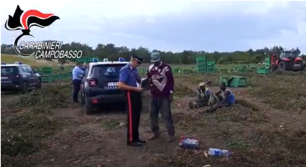 Una persona deferita all’Autorità Giudiziaria, varie decine di lavoratori controllati e oltre diecimila euro di sanzione è il bilancio conclusivo dei controlli effettuati dagli uomini dell’Arma di Campobasso nel fine settimana sulla lotta al caporalato nel Basso Molise.