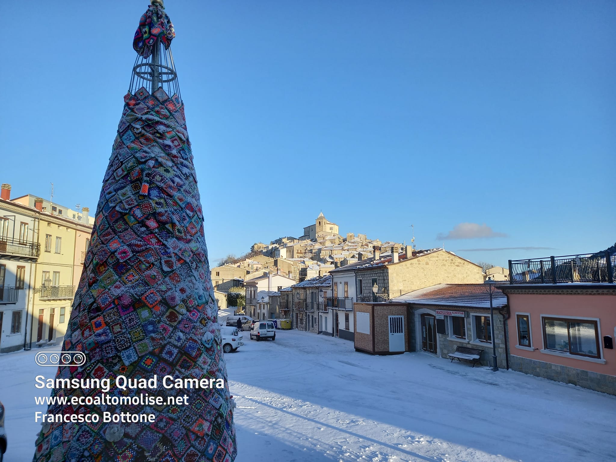 Succede a Schiavi di Abruzzo dove le “uncinettine” coordinate da Pina Falasca sono tornate in azione per vestire l’albero di Natale. «A causa del maltempo non ci è stato possibile completare la “vestizione” dell’albero, ma ovviamente provvederemo appena possibile. – spiega Pina – Siamo molto soddisfatti del lavoro finale e ringrazio tutte le uncinettine che hanno collaborato, ma soprattutto quelle che sono state sempre al mio fianco, come Maria Falasca, Silla Zanna, Rosetta Falasca, Patrizia Cirulli, ma anche Remo, Maria, Armando, Antonio e tutti gli altri. Grazie di cuore a tutti».