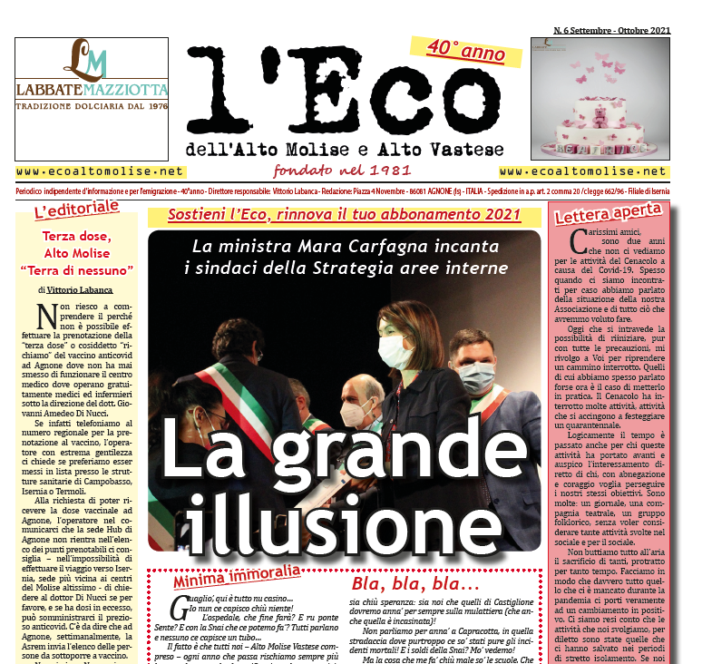 Si torna in edicola. E’ in stampa e tra qualche giorno in distribuzione il nuovo numero de l’Eco Alto Molise – Vastese, versione cartacea. Dodici pagine dove si affrontano le problematiche del territorio sempre più alle prese con il devastante fenomeno spopolamento e della mancanza di servizi. Un’area dimenticata da classe politica e istituzioni che, tuttavia, della parola resistenza fa il suo cavallo di battaglia.